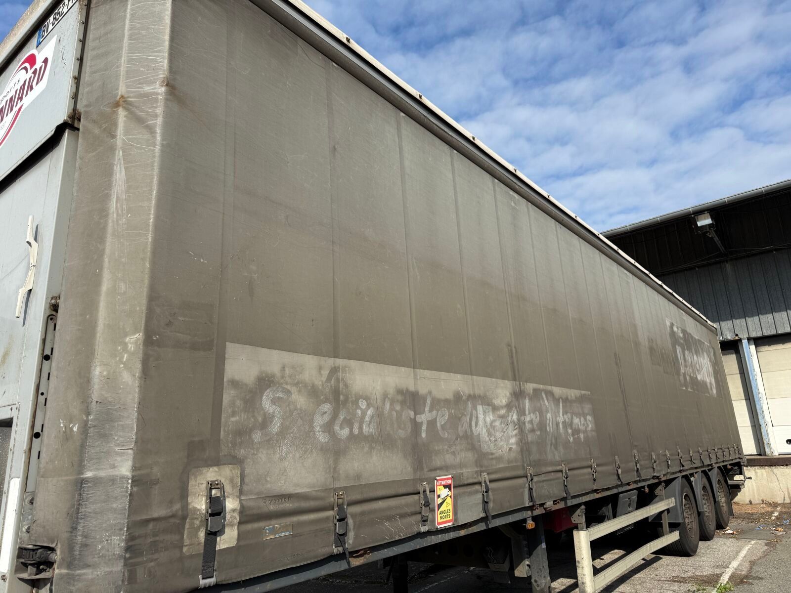 LECITRAILE - Type : SREM - Body : PLSC - Colour : GRIS - 1ere M.E.C : 09/05/2006 - Power : 0 - Tva récupérable - Type mines : 3E20RD - Places : 0 - Length : 0 - Width : 0 - Height : 0 - trois essieux hayon - carnet d'entretien - barré rouge - fiche d'identification - date de validité du contrôle technique 22/01/2026 - GAGE le gage sera levée par nos soins après la vente