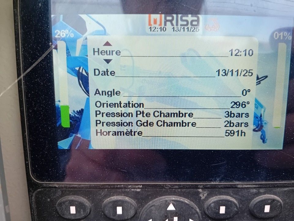 Equipment : CRANE Risa Modèle G2T+ N°série S02560 - 591 H-COMPRESSEUR ATLAS COPCO XAV 186 11.000 L/MN-MARTEAU TERRANOX 8 N° 9007676 + ABSORBEUR DE CHOC 8"-CARROTIER 24 D DIAM 400-Hydraulic lift 9 M-RADIO COMMAND-TARIERE DIAM 300 T 300 S N° 3215-CABINE COURTE BASSE-GRUE FOND PLATEAU-BV ROBOTISEE-BOITE ROBOTISEE-SUSP. REAR SPRINGS-STABILISERS X4-Rear Tires 285/70r19.5 /10% R.W.M./Front Tires 285/70r19.5 /20% R.W.M./CD-RADIO-HYD OUTLET REAR-INTERRACING BAR-GYROPHARE-EDGE 4.20M- Spare Wheel Not Included