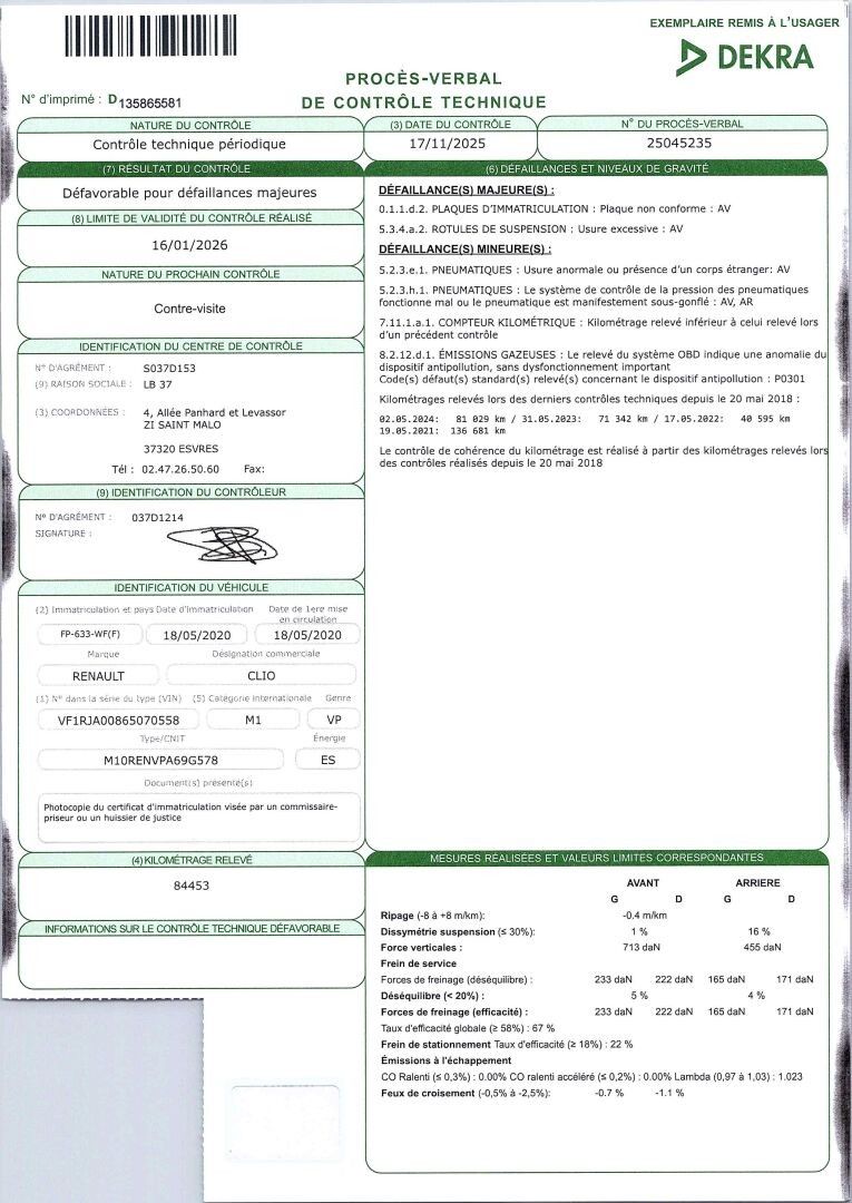 RENAULT CLIO TCE 100 ZEN - Type : VP - Body : CI - Energy : ES - Mileage : 84453 - 1ere M.E.C : 18/05/2020 - Power : 5 - Tva récupérable - Type mines : M10RENVPA69G578 - Seats : 5