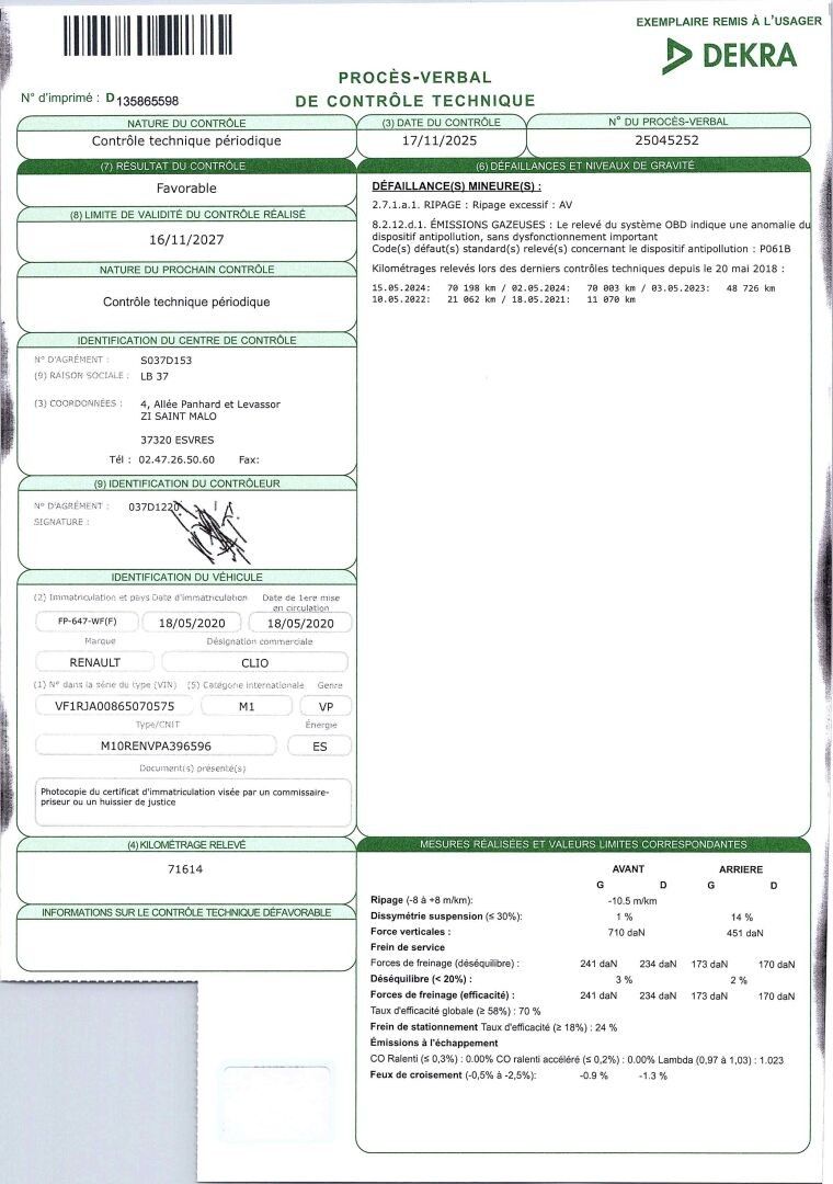 RENAULT CLIO TCE 100 ZEN - Type : VP - Body : CI - Energy : ES - Mileage : 71614 - 1ere M.E.C : 18/05/2020 - Power : 5 - Tva récupérable - Type mines : M10RENVPA396596 - Seats : 5