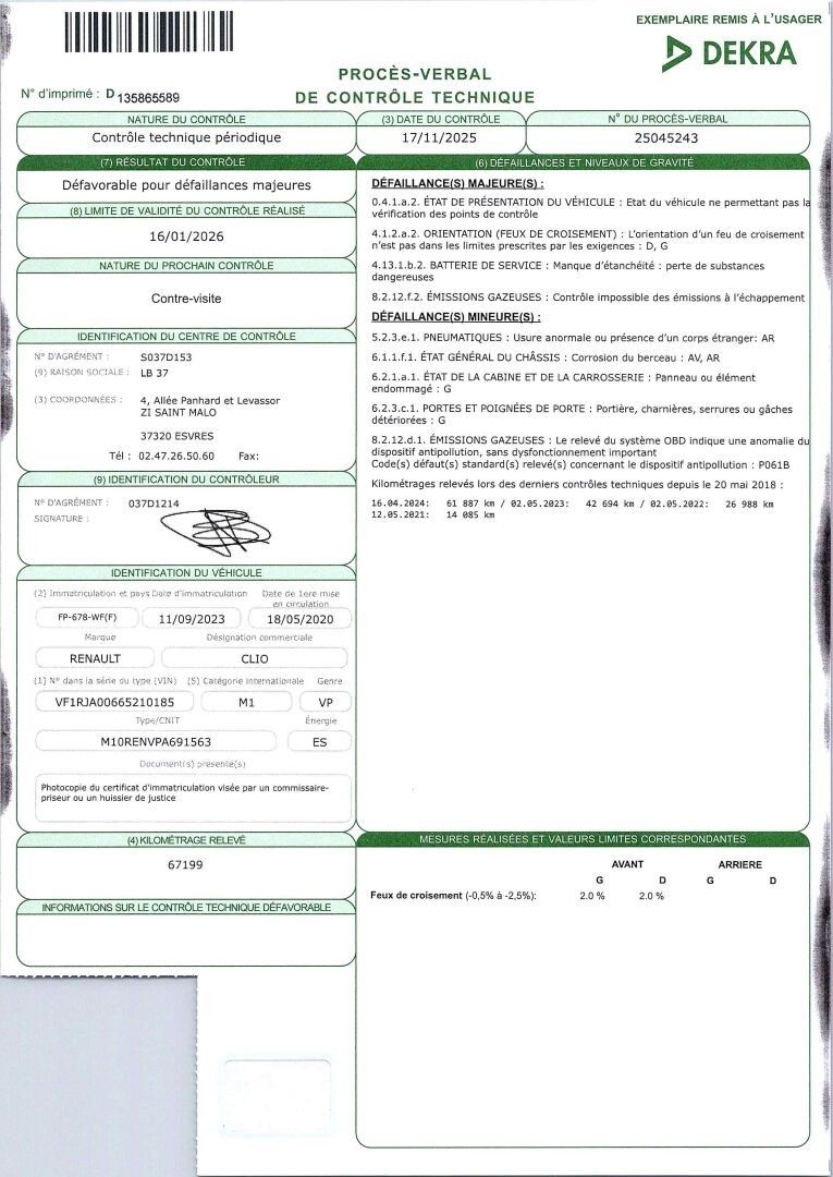 RENAULT CLIO TCE 100 ZEN - Type : VP - Body : CI - Energy : ES - Mileage : 67199 - 1st M.E.C : 18/05/2020 - Power : 5 - Recoverable vat - Type mines : M10RENVPA691563 - Seats : 5