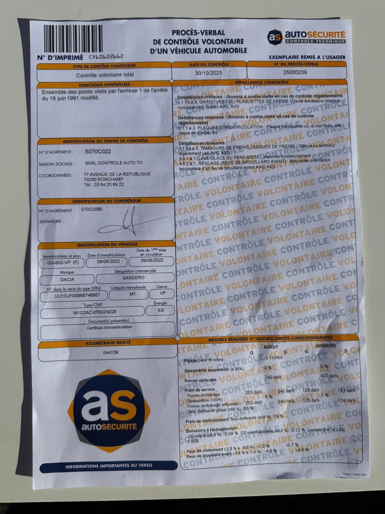 VP DACIA SANDERO TCe 90CVT STEPWAY CONFORT,ES, 5CV, n° UU1DJF00968746957, Imm. GG-602-VP from 09/06/2022 - 44,200 km. Charges 14.28% inc VAT + €592 inc VAT (recoverable VAT).
