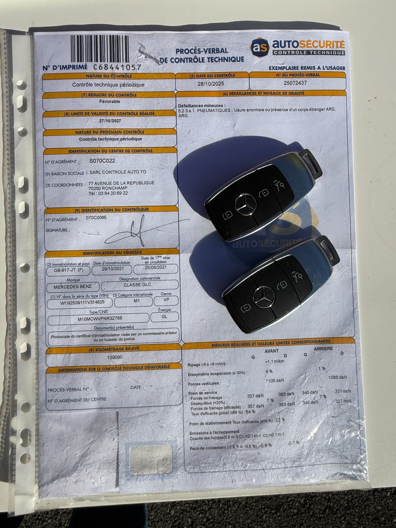 VP MERCEDES CLASS GLC 300 DE AMG Line, GL, 11CV, imm. GB-917-JT of 25/08/2021 - 139,100 km. Charges 14.28% inc VAT + €712 inc VAT (recoverable VAT).