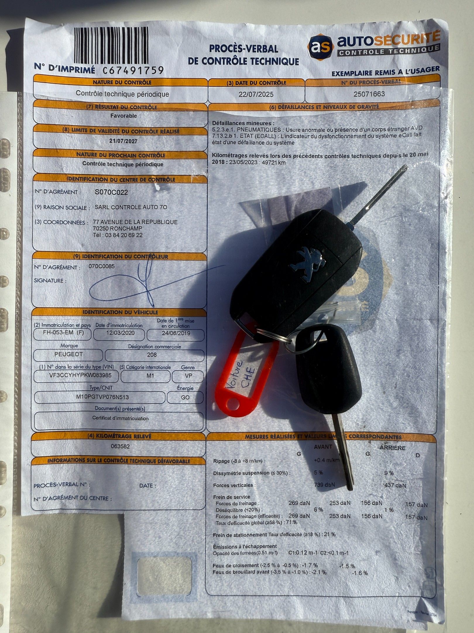 VP PEUGEOT 208, GO, 5CV, Imm. FH-053-EM of 24/06/2019 - 63,600 km. Charges 14.28% inc VAT + €628 inc VAT (VAT not recoverable).