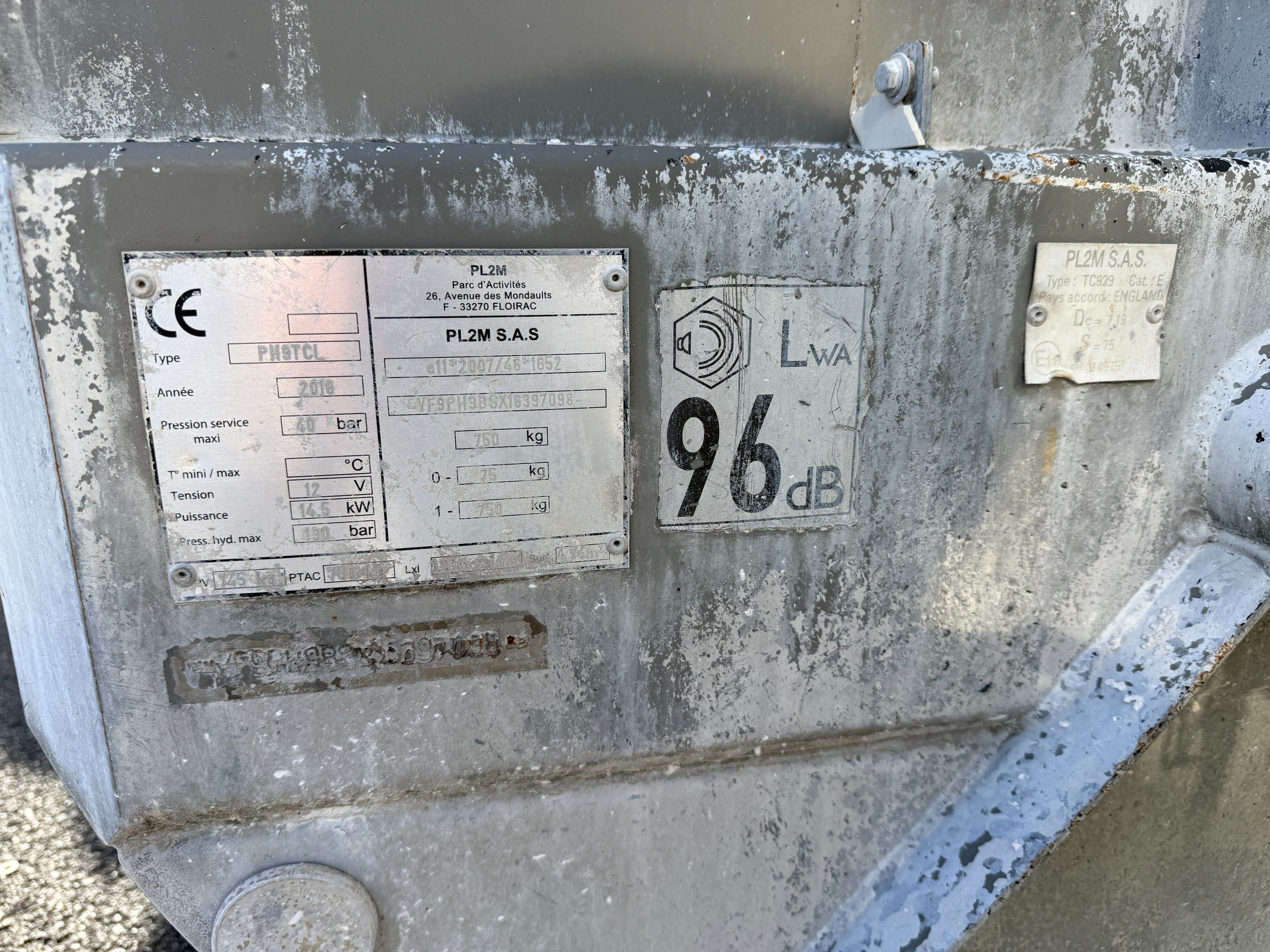 Plastering machine LANCY PH9B-S, Imm. EF-565-PZ dated 29/09/2016. No registration document. FIV (vehicle identification card). Charges 14.28% incl. VAT + €150 incl. VAT (recoverable VAT).