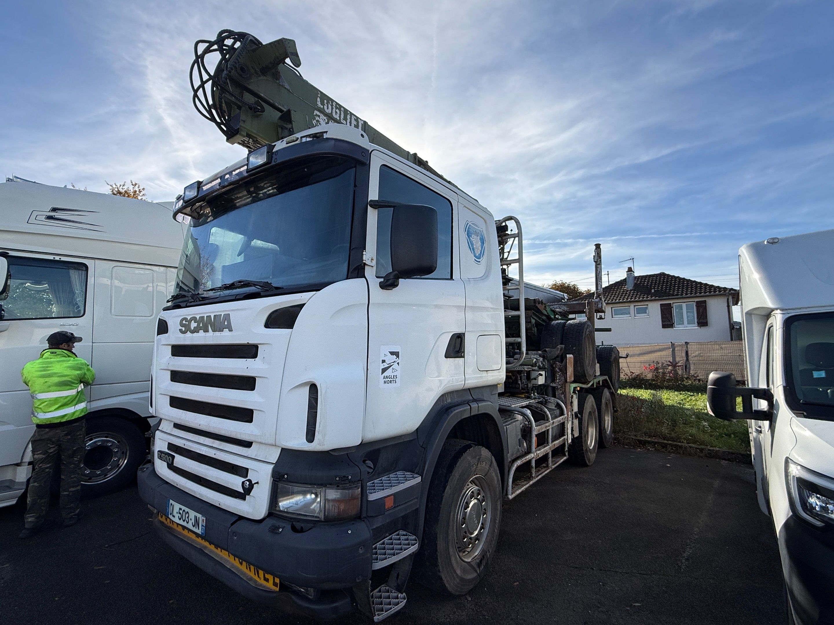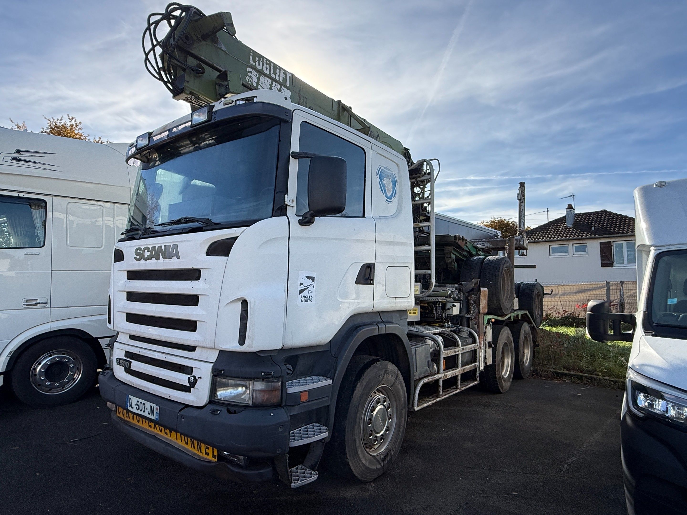 TRR SCANIA logging truck set, GO, 42HP, imm. DL-503-JN dated 14/06/2006 with SREM FRIEDERICH AR2EM, Imm. L-692-JV dated 23/08/2000 - 684,250 km. LOGLIFT forestry crane from 2006. Expenses 14.28% incl. VAT (recoverable VAT).