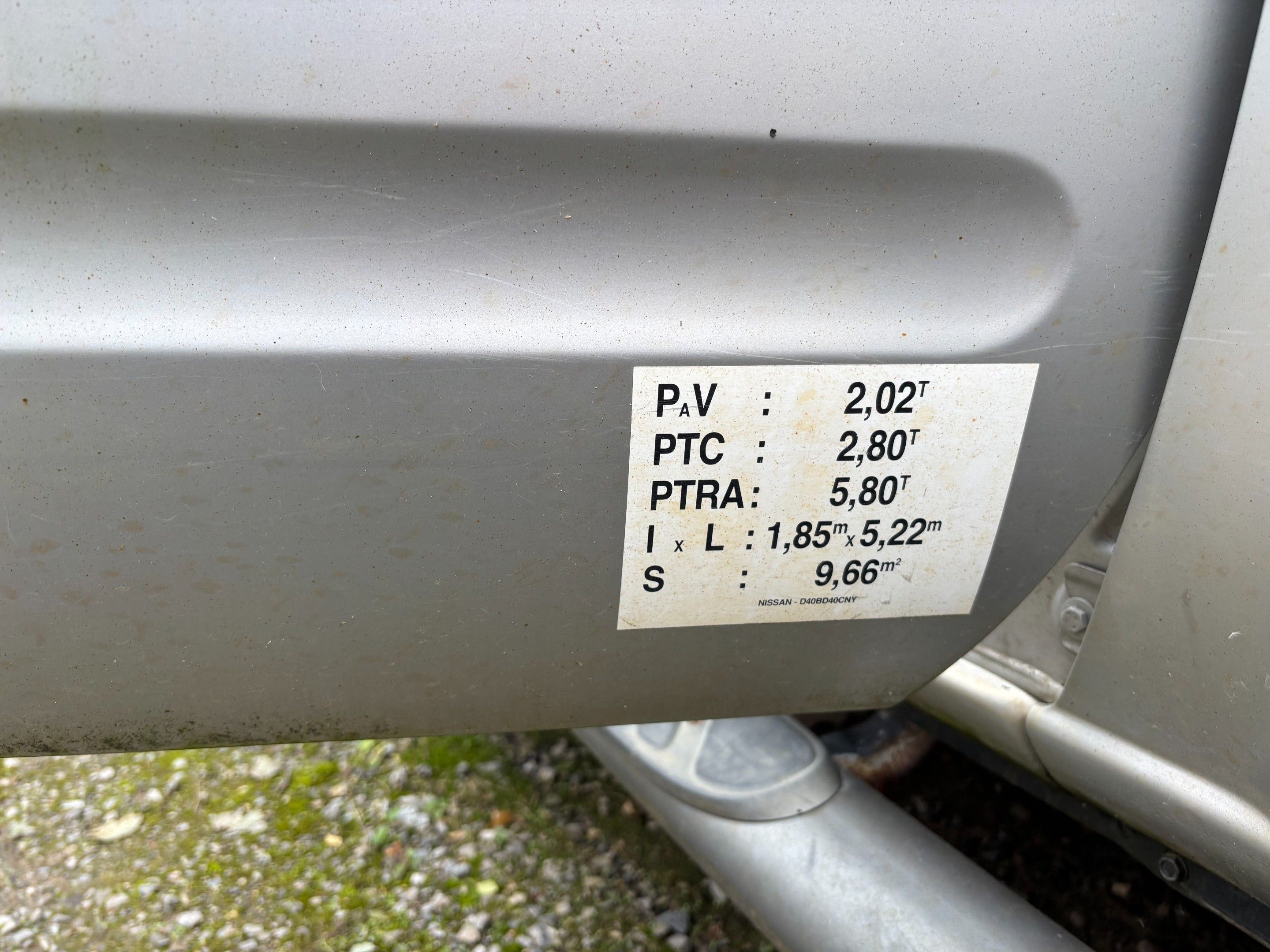 On designation sise à Laon (02000) - CTTE PLATEAU NISSAN Modèle : NAVARA 1651 YA 02 Type constructeur : D40CNY N°de Série : VSKCVND4OU0172792 Date de 1ere mise en service 04/05/2007 Energie : GO Puissance : 8 Véhicule non roulant - vendu en l'état