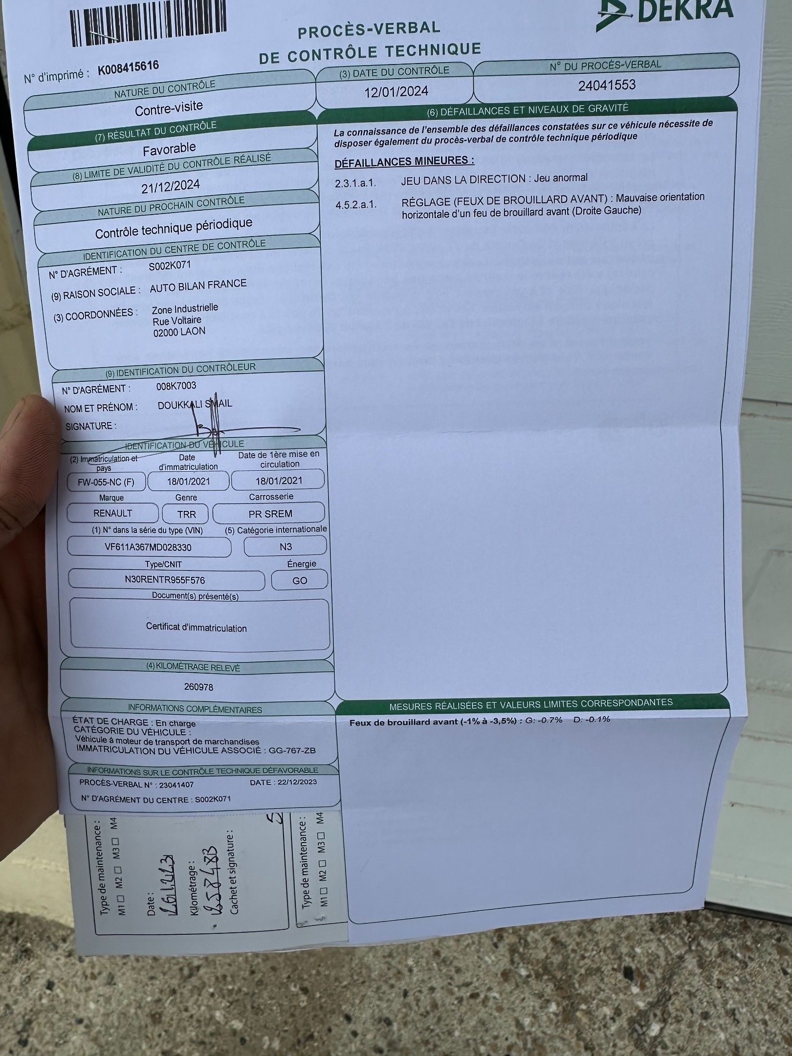 TRR PR SREM RENAULT Modèle : T480 4X2 6 FW055NC Type constructeur : HD001CKZ42ANARRT3675MONA371NA1 N°de Série : VF611A367MD028330 Date de 1ere mise en service 18/01/2021 Energie : GO Puissance : 34 Kilomètres Compteur non garantis : 343300 Contrôle Technique : Non - Attention nous n'avons pas la carte grise et pas de FIV , seulement une copie + ordonnance de vente aux enchères