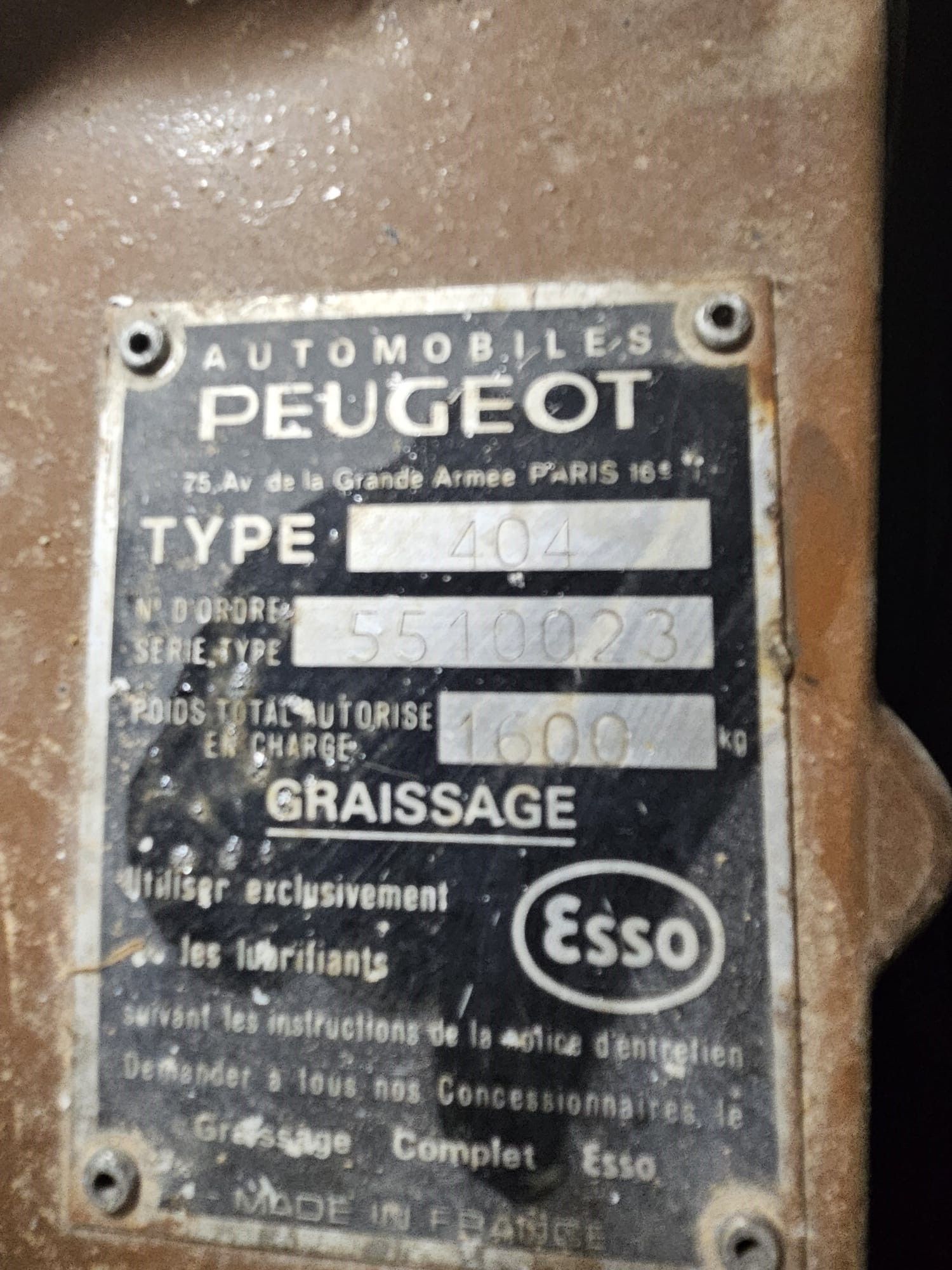 Non pledge certificate: Yes Pledged vehicle: No Rolling vehicle: Yes Recoverable VAT: No Remarks: Launched in 1960, the PEUGEOT 404 was a modern and innovative car, the first French saloon to be fitted with a fuel injection engine. Its success was quickly confirmed, and from 1962 its bodywork was available as a coupé, cabriolet, estate and pick-up. Production continued abroad until the 1980s, when 2,800,000 examples of this almost American-looking French car were produced.