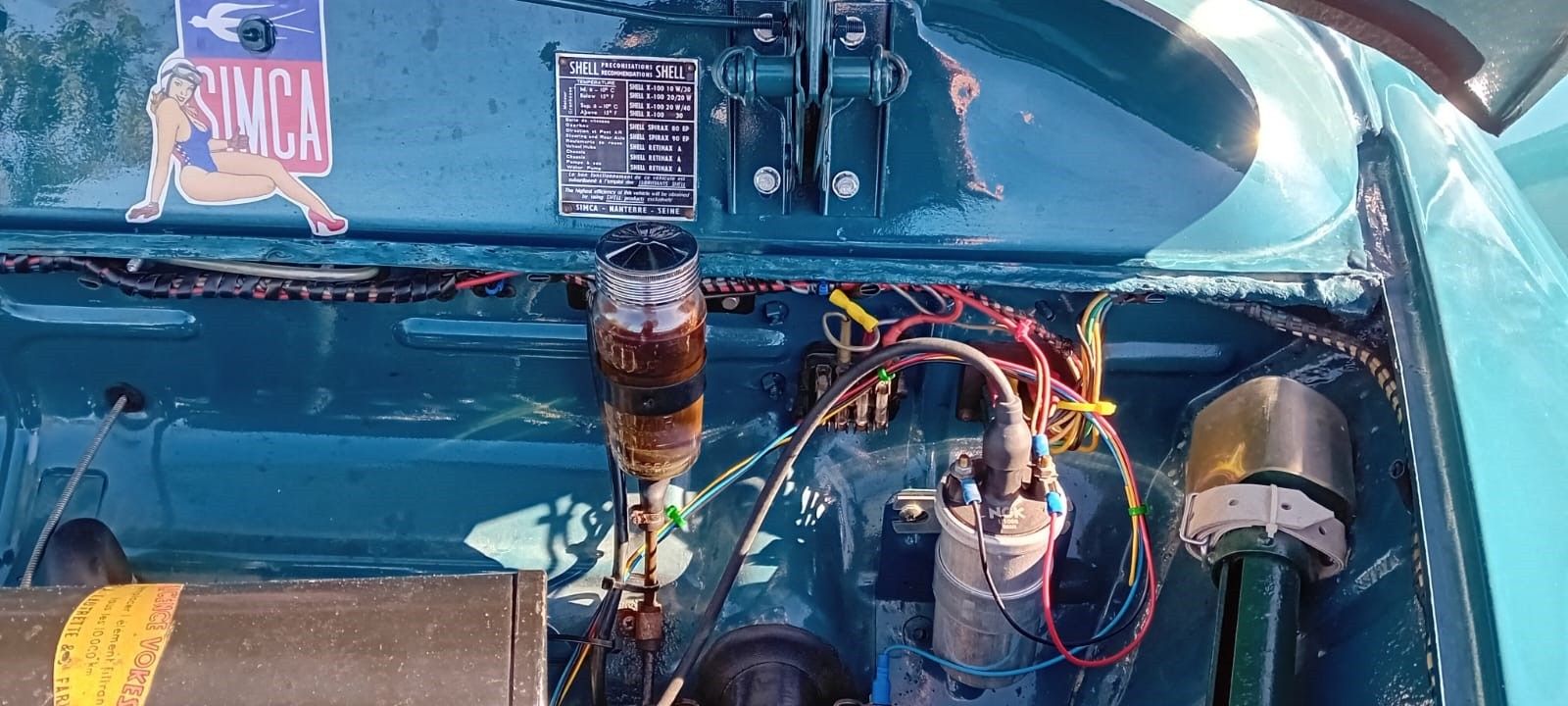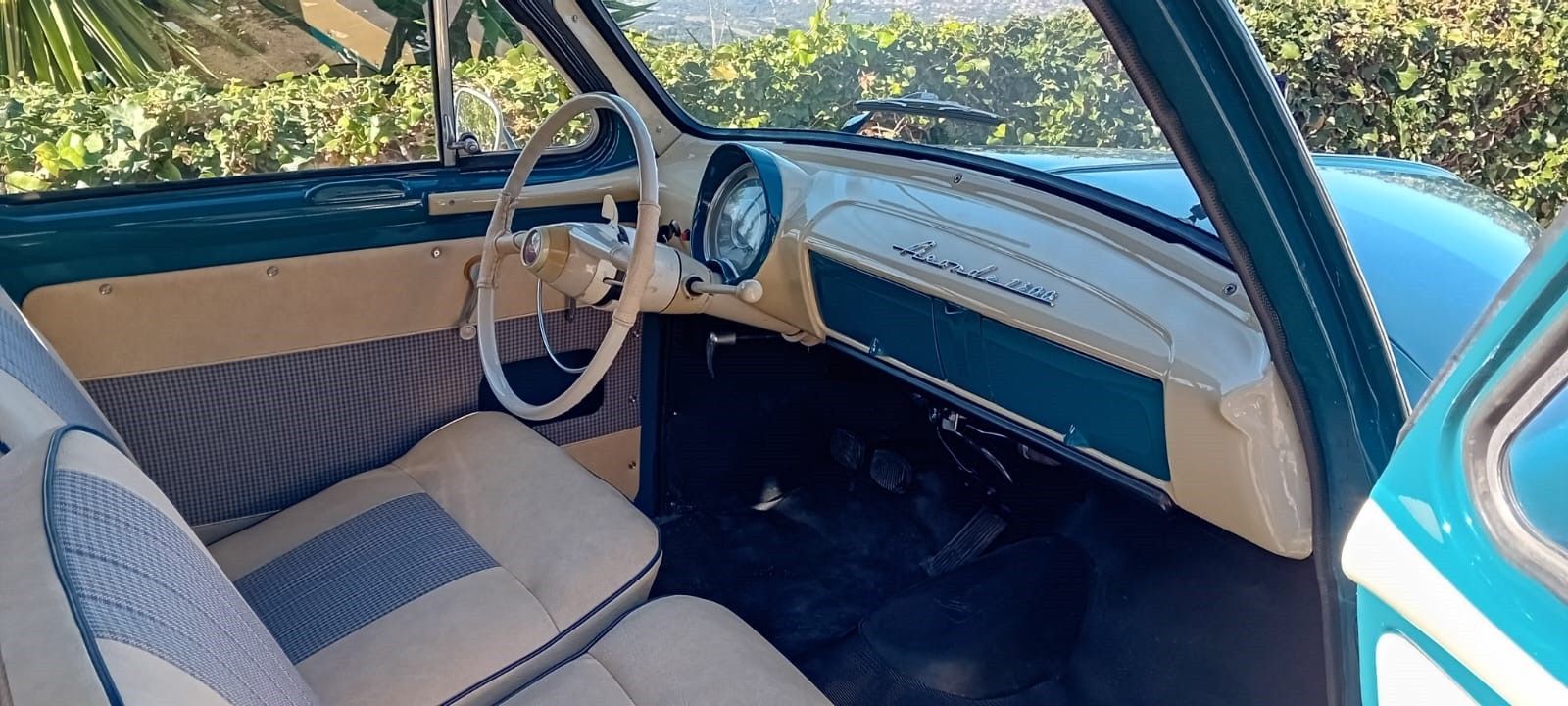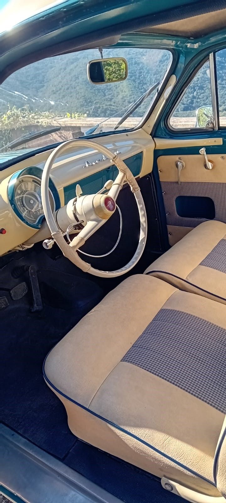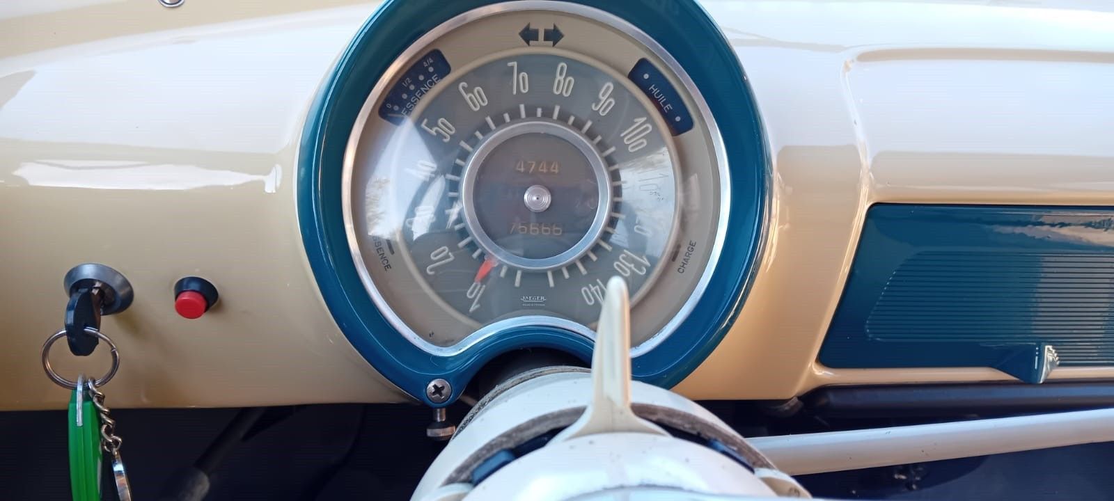 this vehicle was the subject of a complete restoration in 2020 with complete dismantling and replacement if necessary, runs daily, mechanics completely rebuilt (engine, brakes, shock absorbers, exhaust, electronic ignition 12 v, radiator, tank treated RESTOM) upholstery, headliner, door panels new, no corrosion except on the rear shock, treatment of hollow bodies, paint redone, some scratches from use.