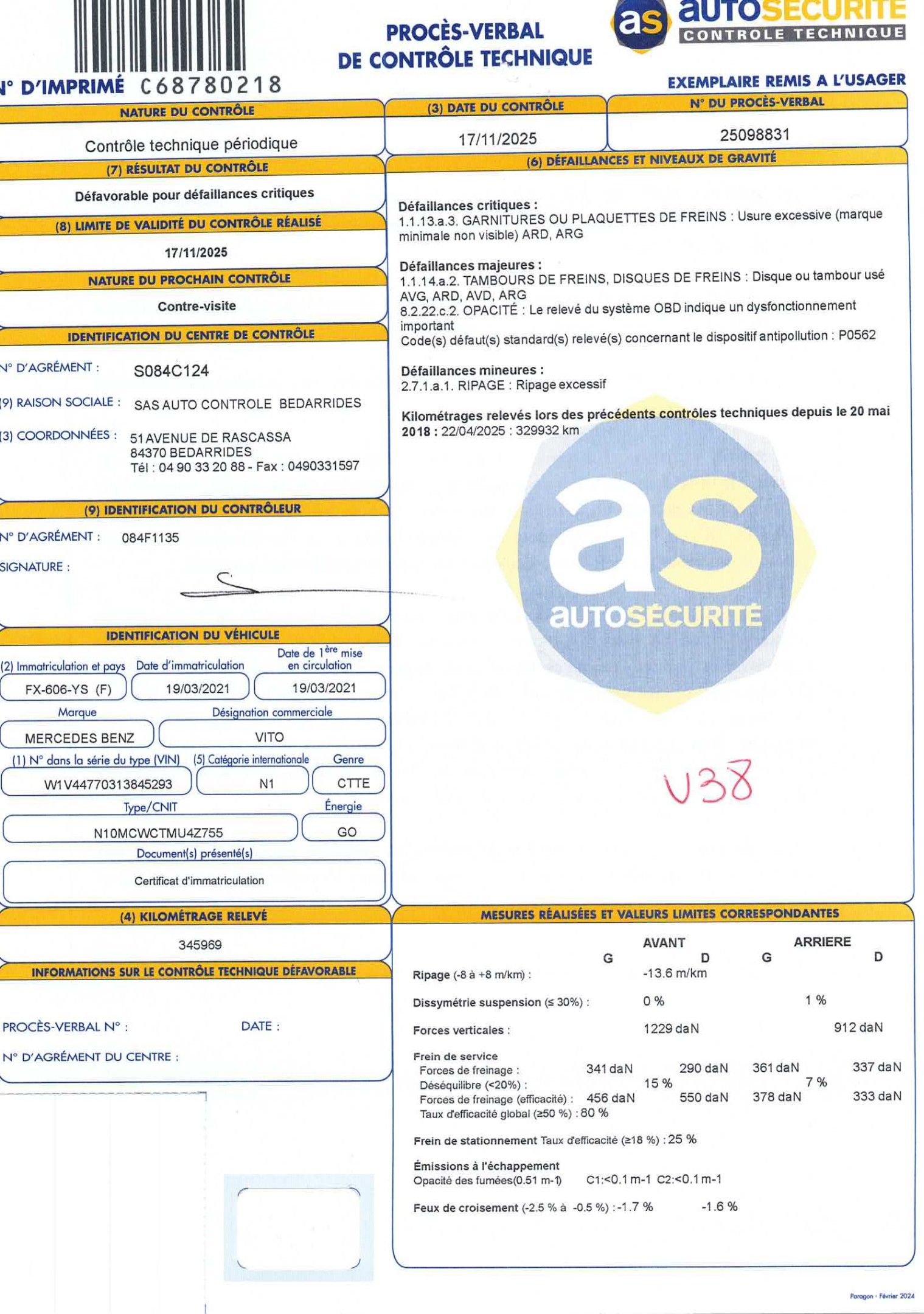*CTTE MERCEDES VITO 119CDI MIXTO LG SELECT - Type: N10MCWCTMU4Z755 - Serial: W1V44770313845293 - Body: FOURGON - GO - 7CV - 1ère MEC: 19/03/2021 - 345 962kms - TVA: Oui* - 5 Places - Equipements : Van vitré 5 plces - 2 clés - Porte latérale - Autoradio - Prise USB - Ecran tactile - GPS - Bluetooth - Régulateur de vitesse - Radars de stationnement - Rétros électriques - Climatisation - Vitres teintées - Airbags/ Rayes, éraflures