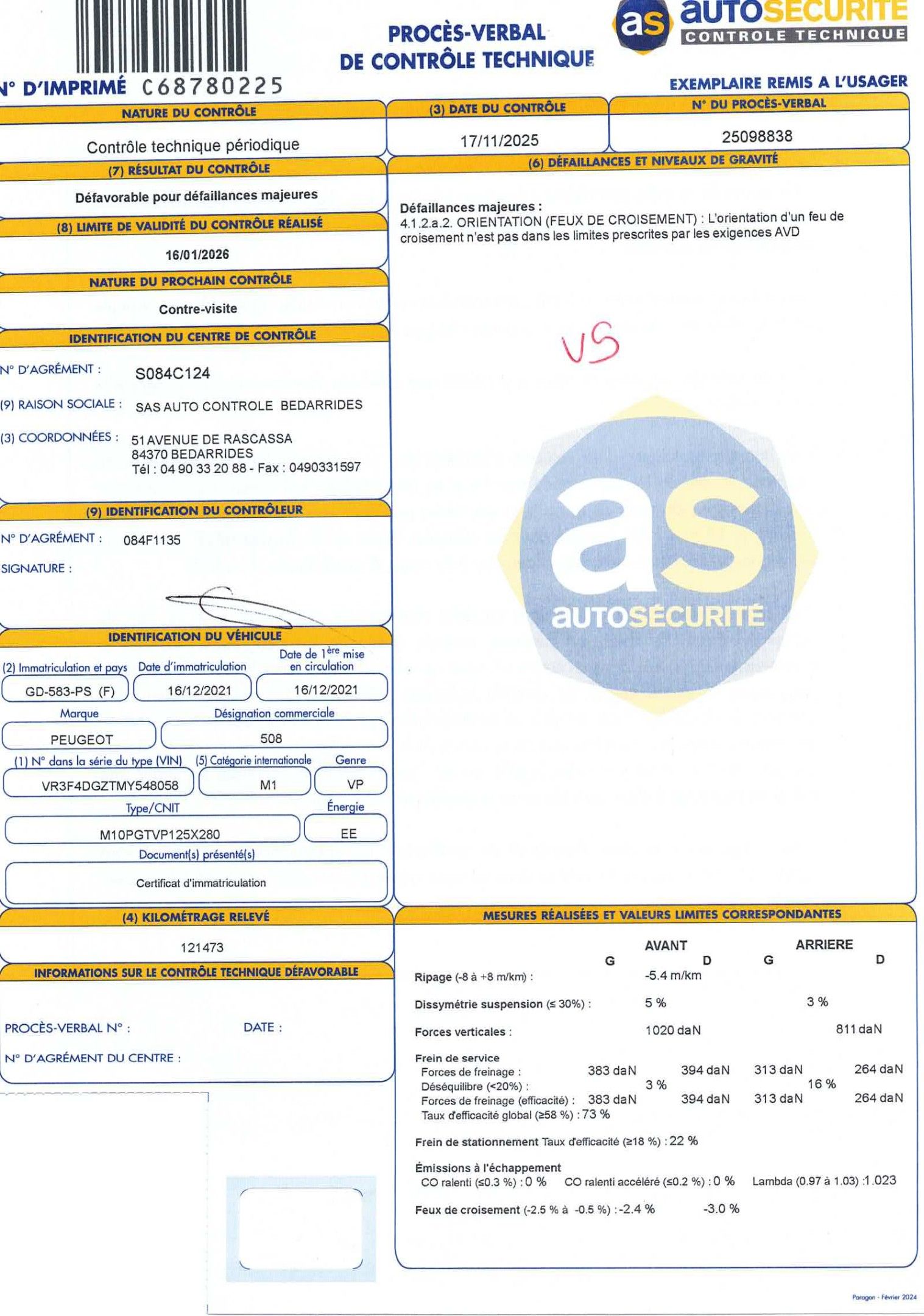 *VP PEUGEOT 508 SW HYBRID 225CJ+H ALLURE PACK E-EAT8 - Type: M10PGTVP125X280 - Series: VR3F4DGZTMY548058 - Body: BREAK - EE - 10HP - 121 473kms - 5 Seats - VAT: Yes - Equipment : 5 portes - 1 clé - Interface Média - Régul de vitesse adaptatif - Allumage des phares auto - Feux automatique - Jantes Alu - Radars de stationnement - Rétros électriques rabattables - Vitres électriques - Vitres AR teintées - Navigation PEUGEOT - Airbags - Crochet - Prise de chargement - Boite Auto