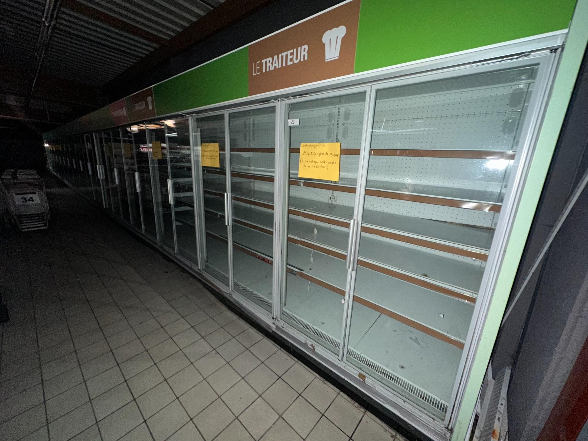 ENSEMBLE DE VITRINE REFRIGEREES KOXKA froid positif à 32 portes (19.20 m), groupe intégré (modèle ancien)