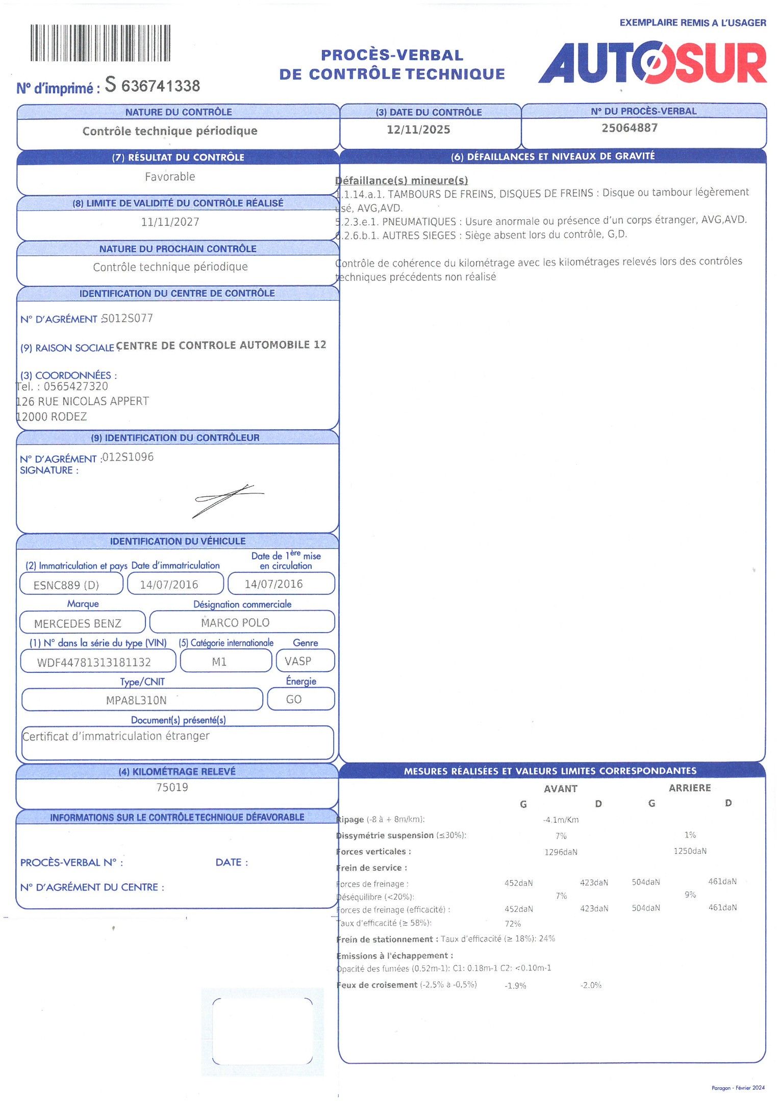 PC MERCEDES V 250 CDI MARCO POLO BLUETECH BVAUTO - Registration: ES NC889