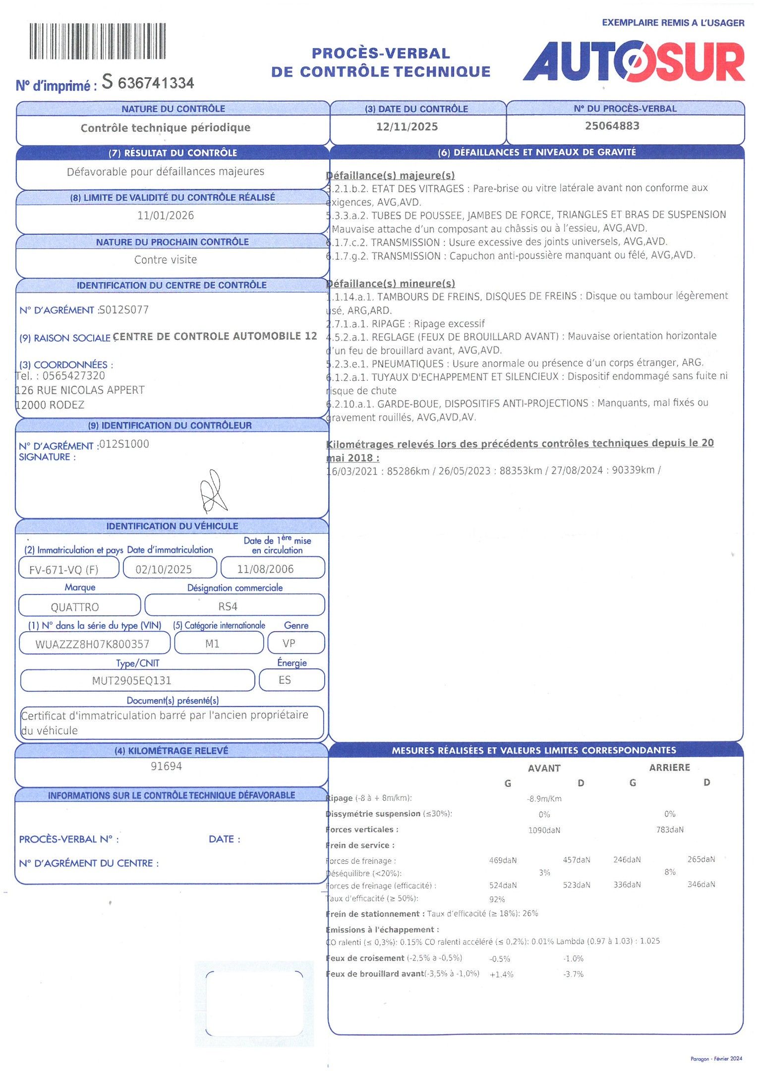 Cars AUDI RS4 CABRIOLET V8 4,2 QUATTRO 420 CV BVMEC - Registration: FV-671-VQ