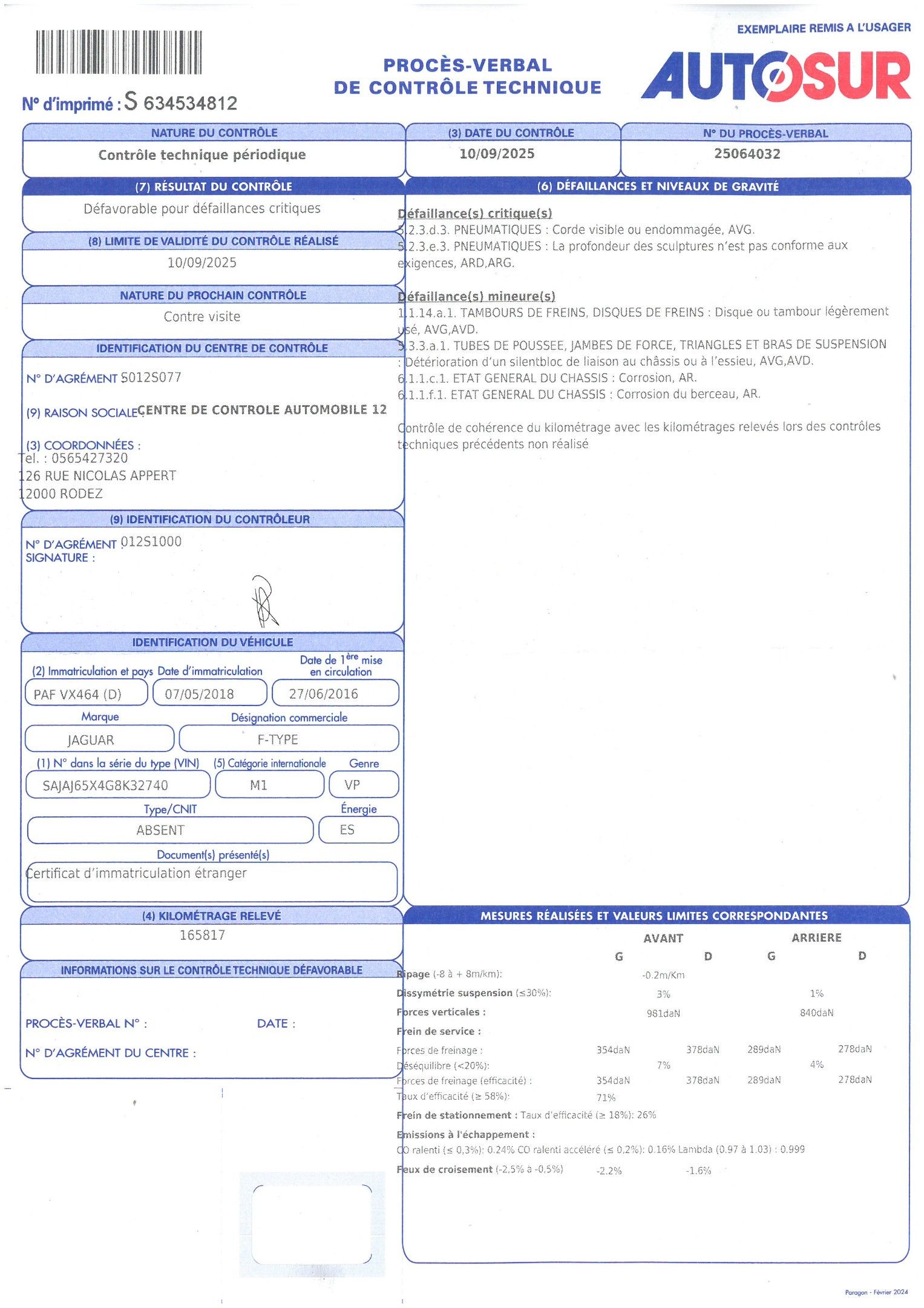Cars JAGUAR F-TYPE CABRIOLET 3,0 V6 S AWD BVA 380 CV Registration number : PAF VX464