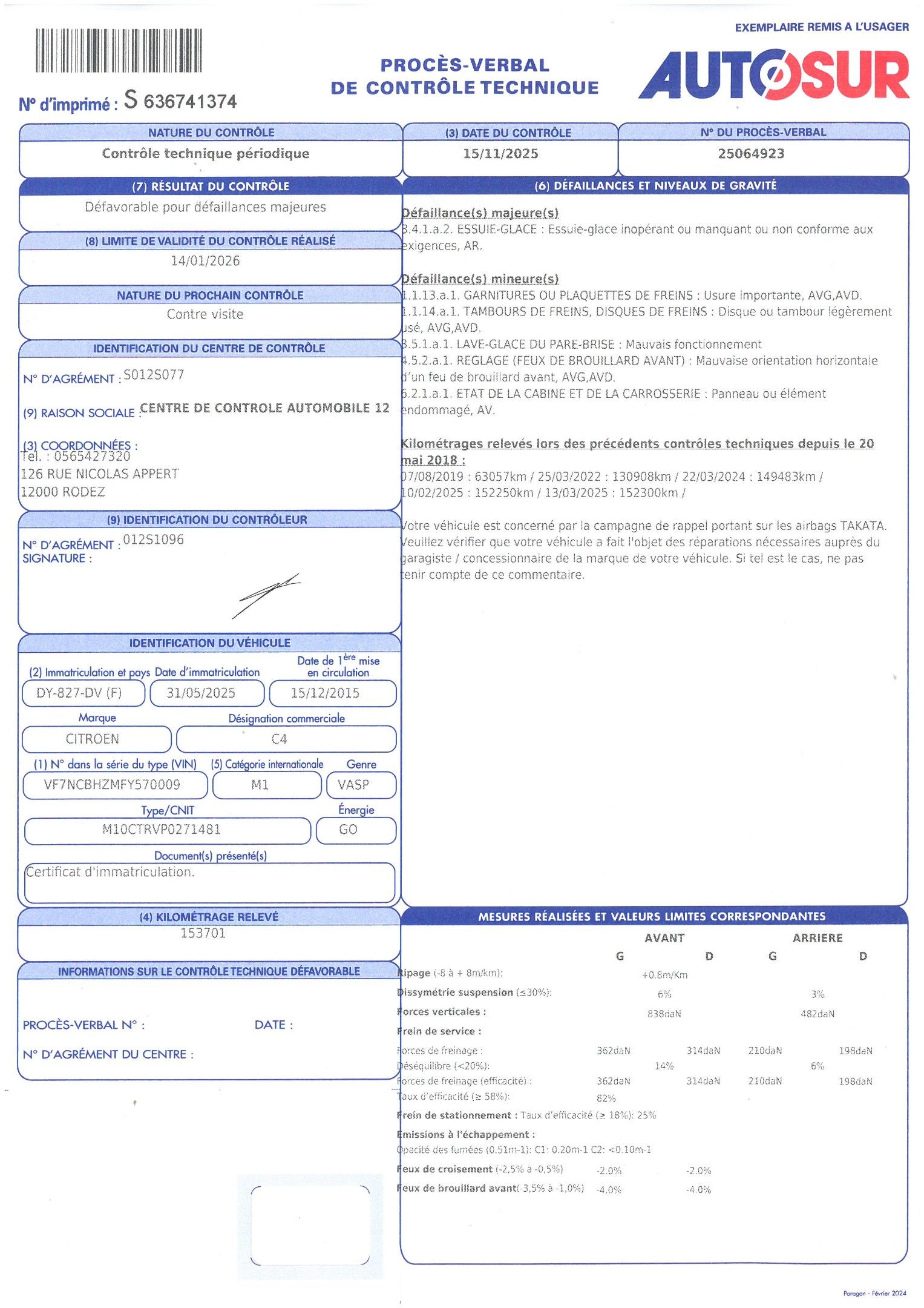 VASP CITROEN C4 1,6 HDI 120 CV - Registration: DY-827-DV