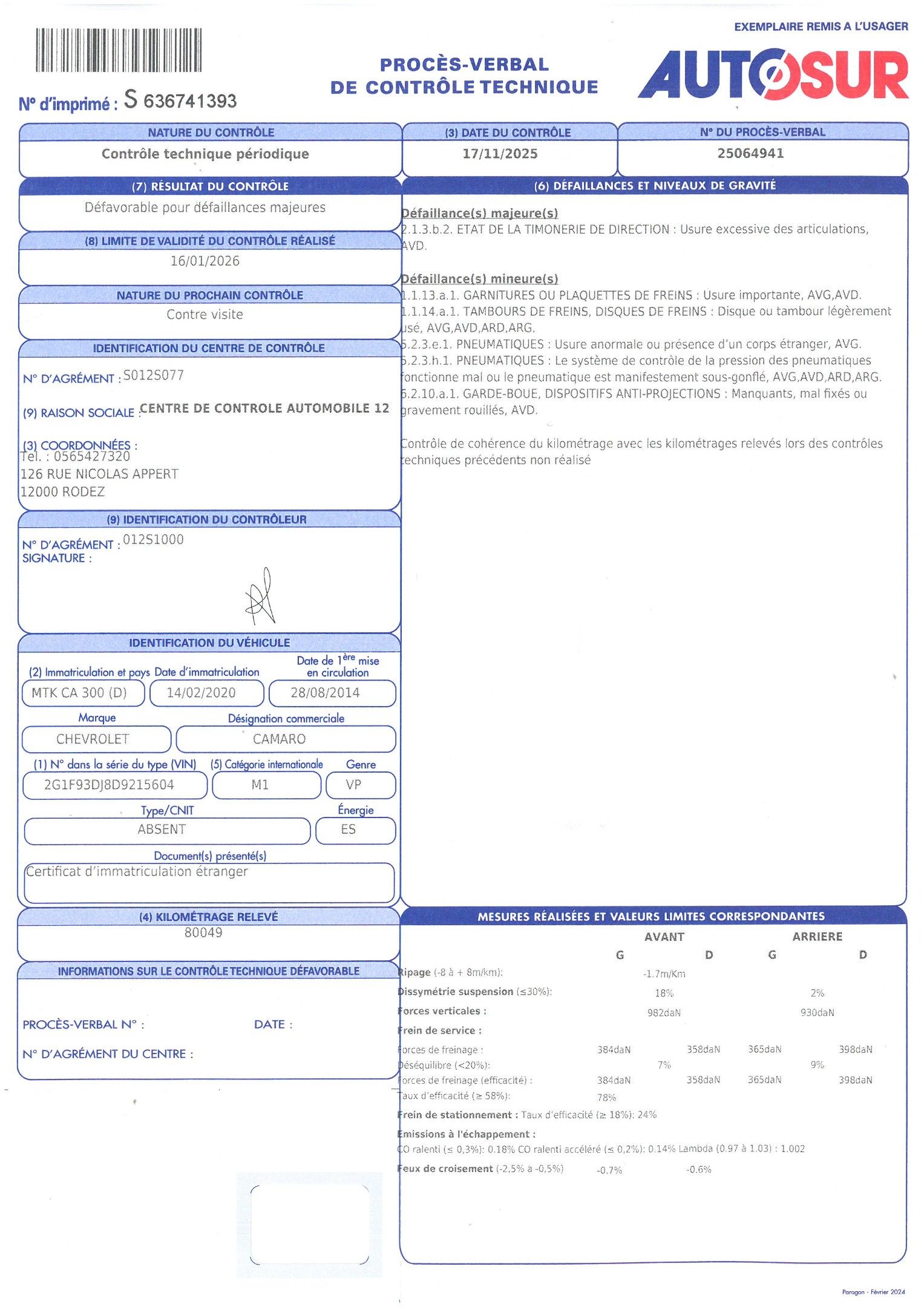 Technical inspection carried out on 17 November 2025