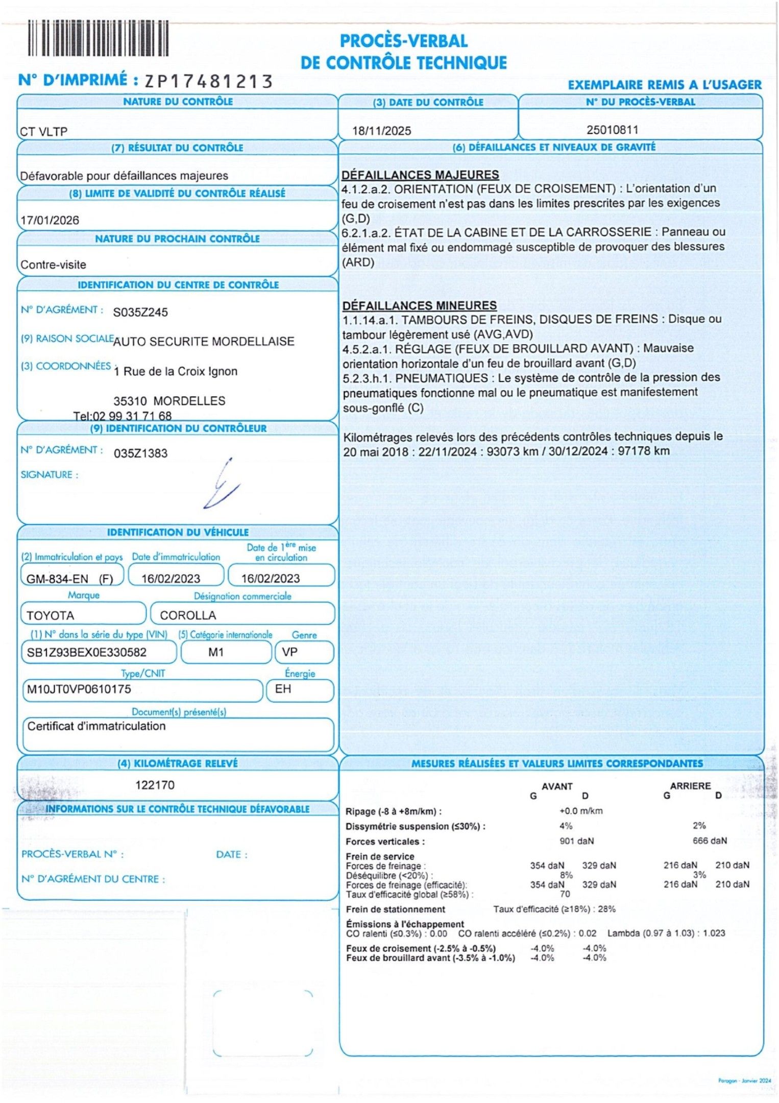 TOYOTA COROLLA TOURING SPORTS 1.8 VVT-I 16V GPS 122 HSD CVT 98 CV - Registration: GM-834-EN - Type: PC - Body: BREAK - Energy: EH - Color: WHITE - Mileage: 122170 - 1ere M.E.C: 16/02/2023 - Power: 5 - Vat recoverable - Seats: 5 - Remarks : SOLD WITHOUT REGISTRATION - WITH FIV