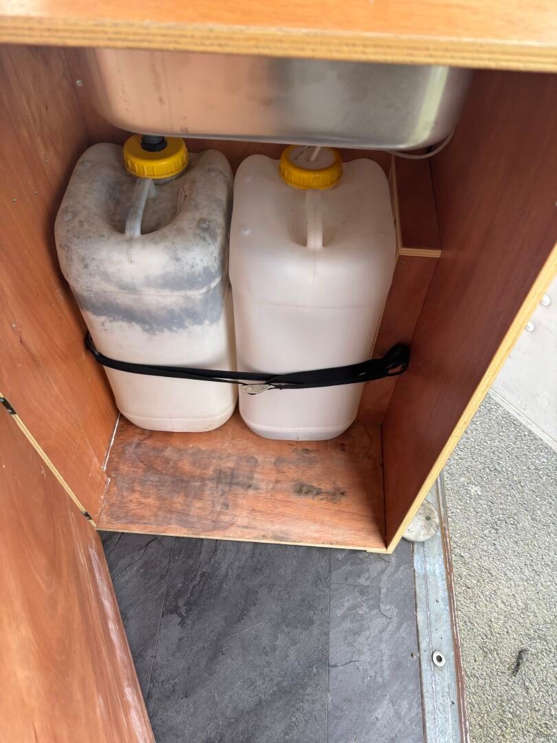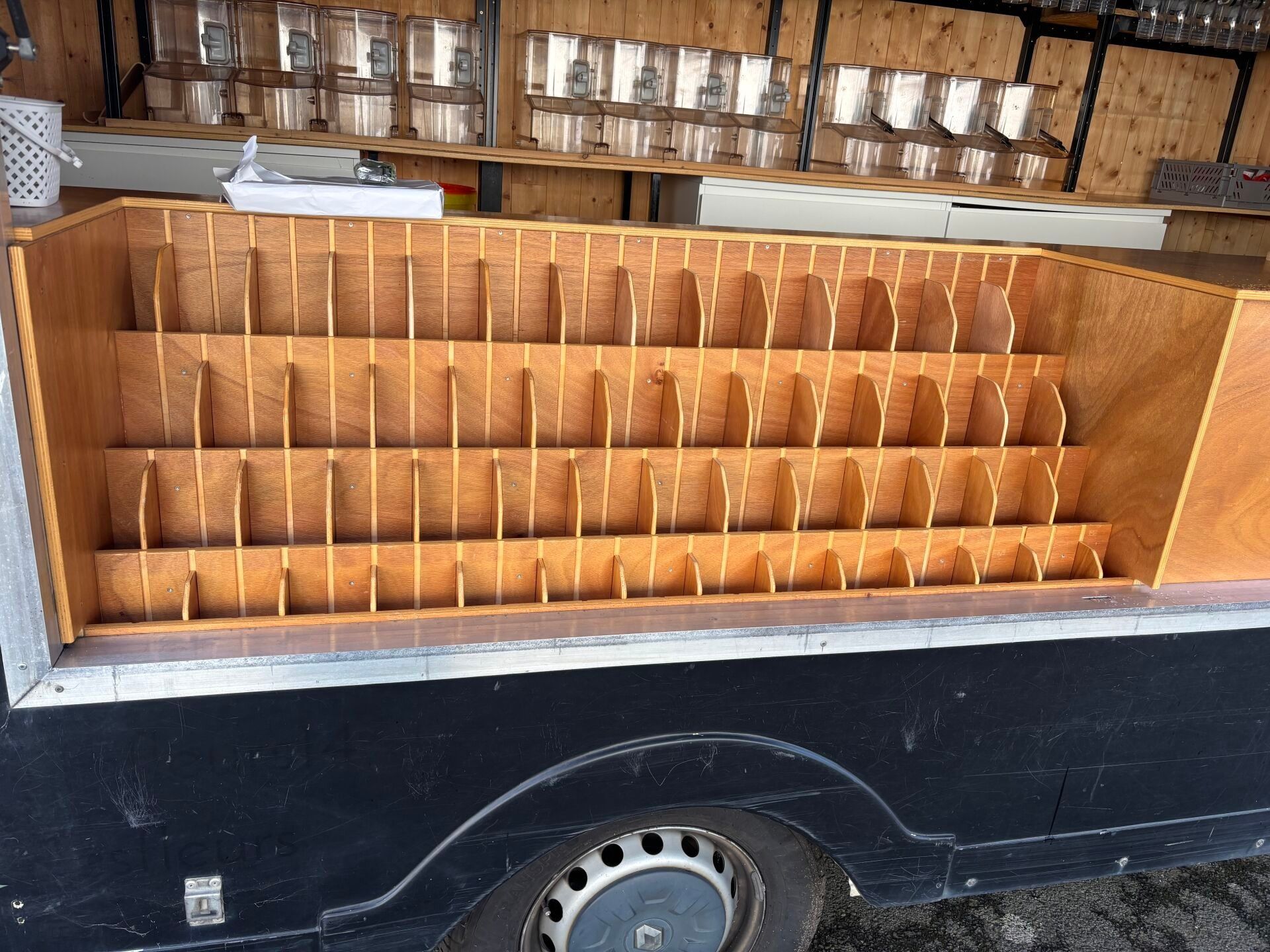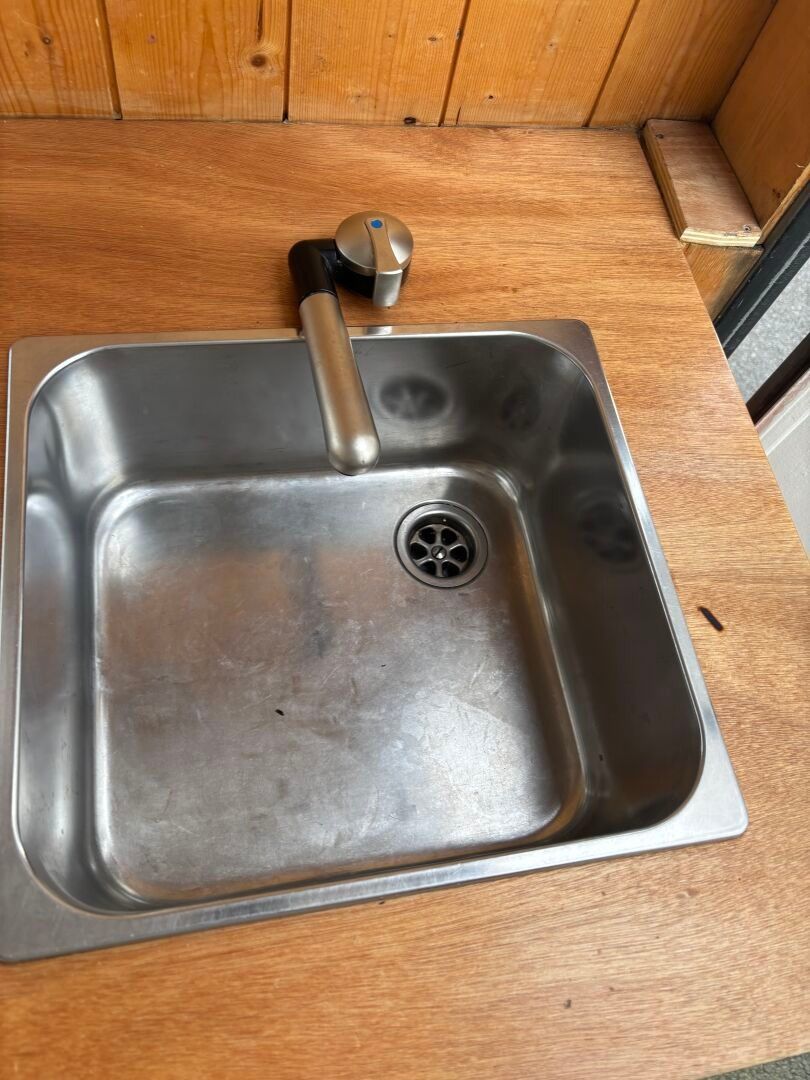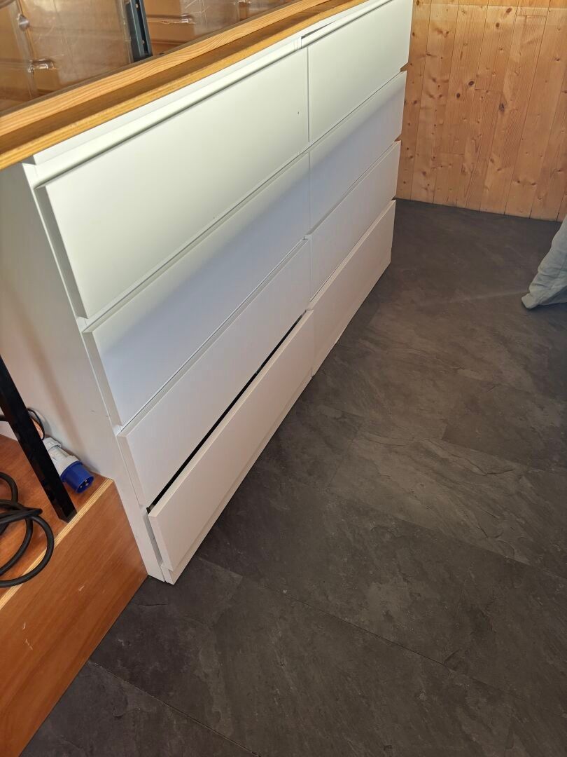 FITTED WITH CASH UNIT, PLYWOOD DISPLAY UNIT, 1-BOWL STAINLESS STEEL HAND-WASHER, 3 WHITE MELAMINE CHESTS OF DRAWERS WITH 4 DRAWERS, 1 GREY METAL SHELF