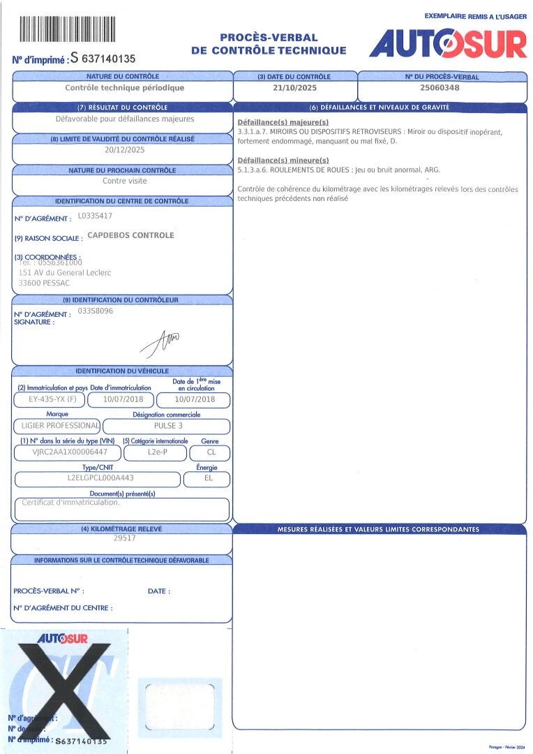 STABY LIGIER PRO PULSE 3 - Type : CL - Body : CLTRP - Energy : EL - Color : YELLOW - Mileage : 29517 - 1ere M.E.C : 10/07/2018 - Power : 0 - VAT recoverable - Mine type : L2ELGPCL000A443 - Seats : 1 - Length : 210 - Width : 72 - Height : 0 - Remarks : *** Selling expenses 15 % + administration expenses 300 € incl. VAT + LIVE FEES IF INTERENCHERED 48 € incl. VAT ***