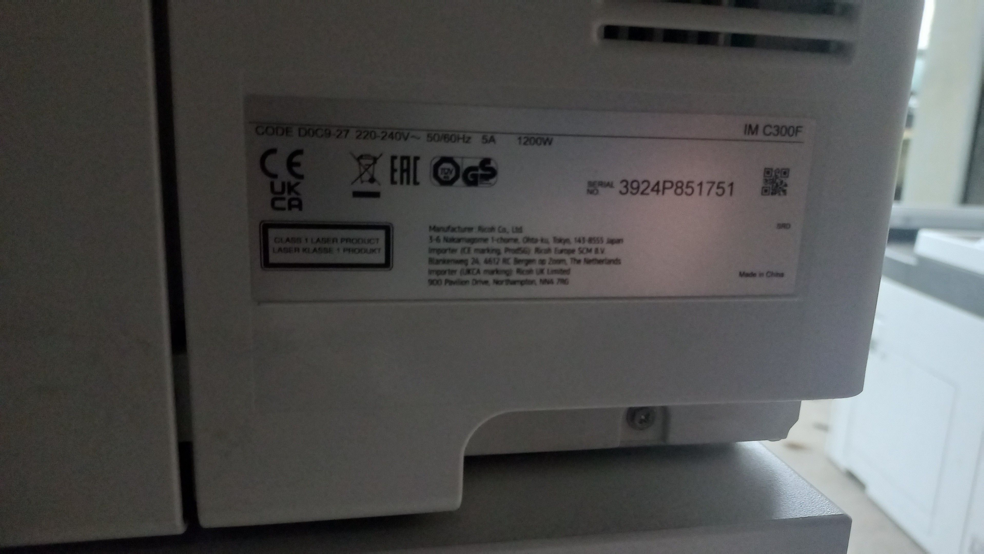 1 RICOH IM C300 photocopier No. 3924P851751 - Judicial rate: 14.28% inclusive of tax, (+ Live Interencheres fee of 1% exclusive of tax (equipment). VAT is recoverable.