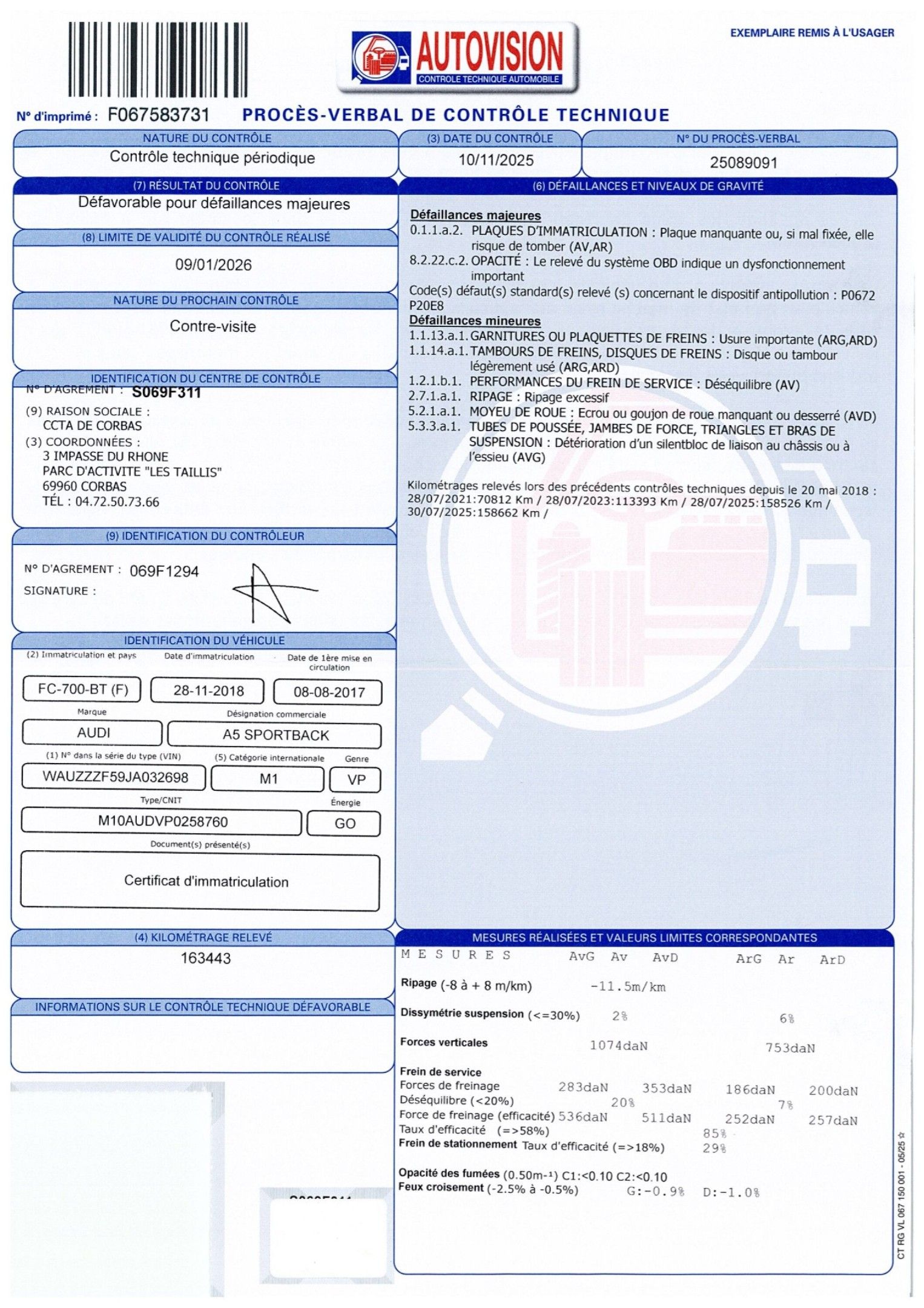 AUDI A5 SPORTBACK 310 TDI - Type: PC - Body: CI - Energy: GO - Color: BLACK - Mileage: 163443 - 1ere M.E.C: 08/08/2017 - Power: 16 - Seats: 5 - Remarks: CG - WITHOUT PLEDGE OR OPPOSITION - 2 KEYS - AUTO GEARBOX - USED CONDITION - SCratches