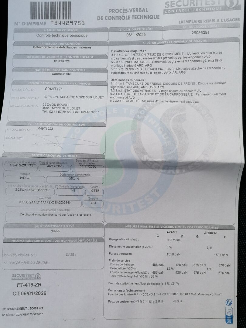 IVECO DAILY 35C14 20M3 CAISSE HAYON - Type : CTTE - Body : FOURGON - Energy : Go - Colour : BLANC - Mileage : 89978 - 1ere M.E.C : 06/11/2020 - Power : 8 - Tva récupérable - Seats : 3 - Pack électrique-lim/reg de vitesse-boite 6-hayon-2 clés - Equipements : CLIM