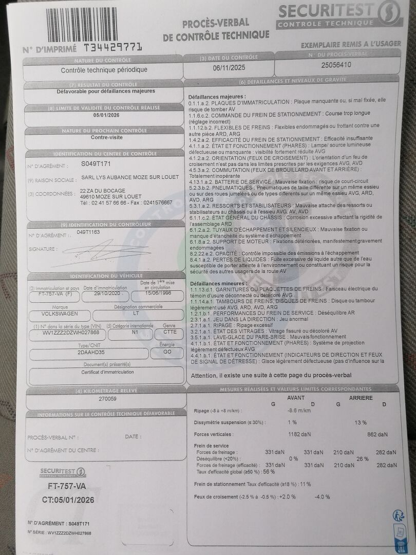 VOLKSWAGEN LT35 2.5 TDI 102 CV - Type : CTTE - Body : FOURGON - Energy : Go - Color : BLANC - Mileage : 270059 - 1ere M.E.C : 15/06/1998 - Power : 8 - Tva récupérable - Seats : 3 - Battery HS-Carte non a jour