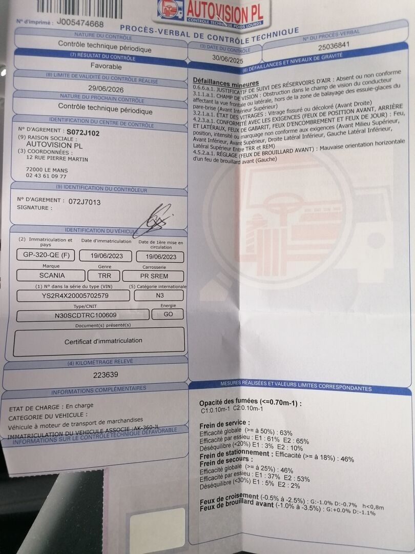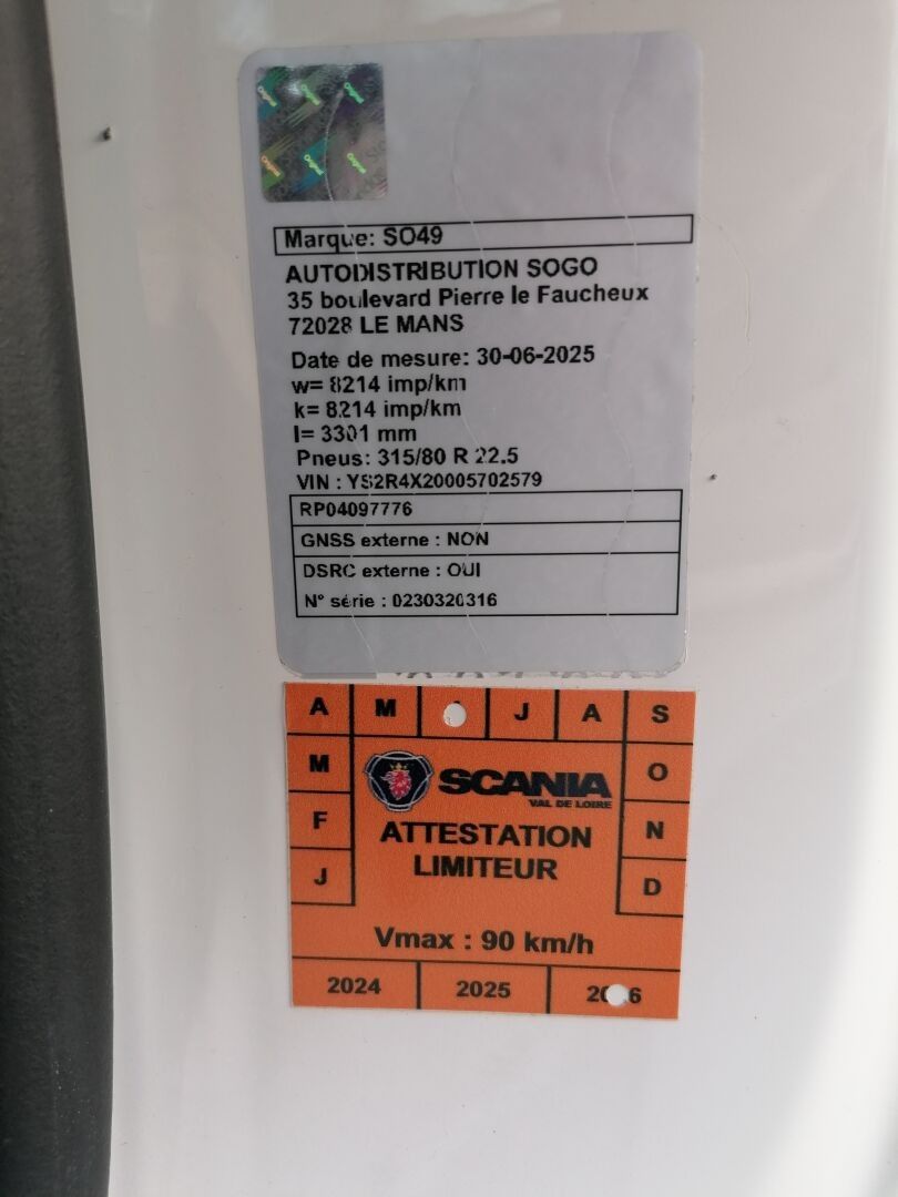 SCANIA TRACTOR ROUTIER SCANIA R 500 A 4X2 NB - Type: TRR - Body: PR SREM - Energy: Go - Color: WHITE - Mileage: 229307 - 1ere M.E.C: 19/06/2023 - Power: 34 - Tva récupérable - Type mines: N30SCDTRC100609 - Seats: 2 - Pack electric-lim/reg de vitesse-boite automatique-2 couchettes-frigo-2 clés - Equipements : GPS / CLIM