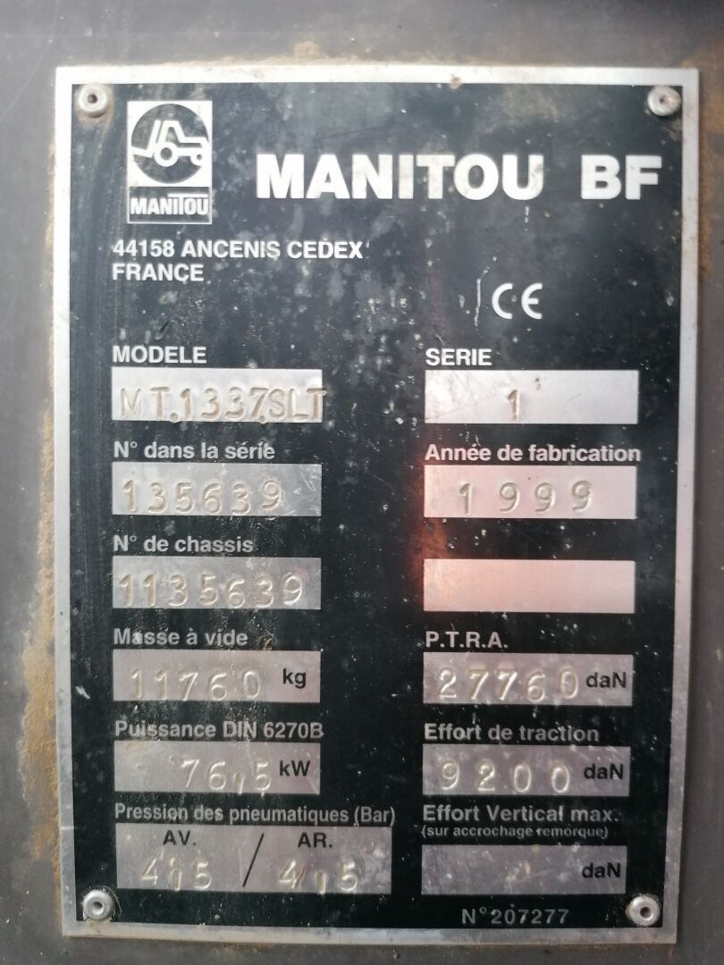 TELESCOPIC MANITOU MT 1337 YEAR 1998 - Energy : Go - Colour …