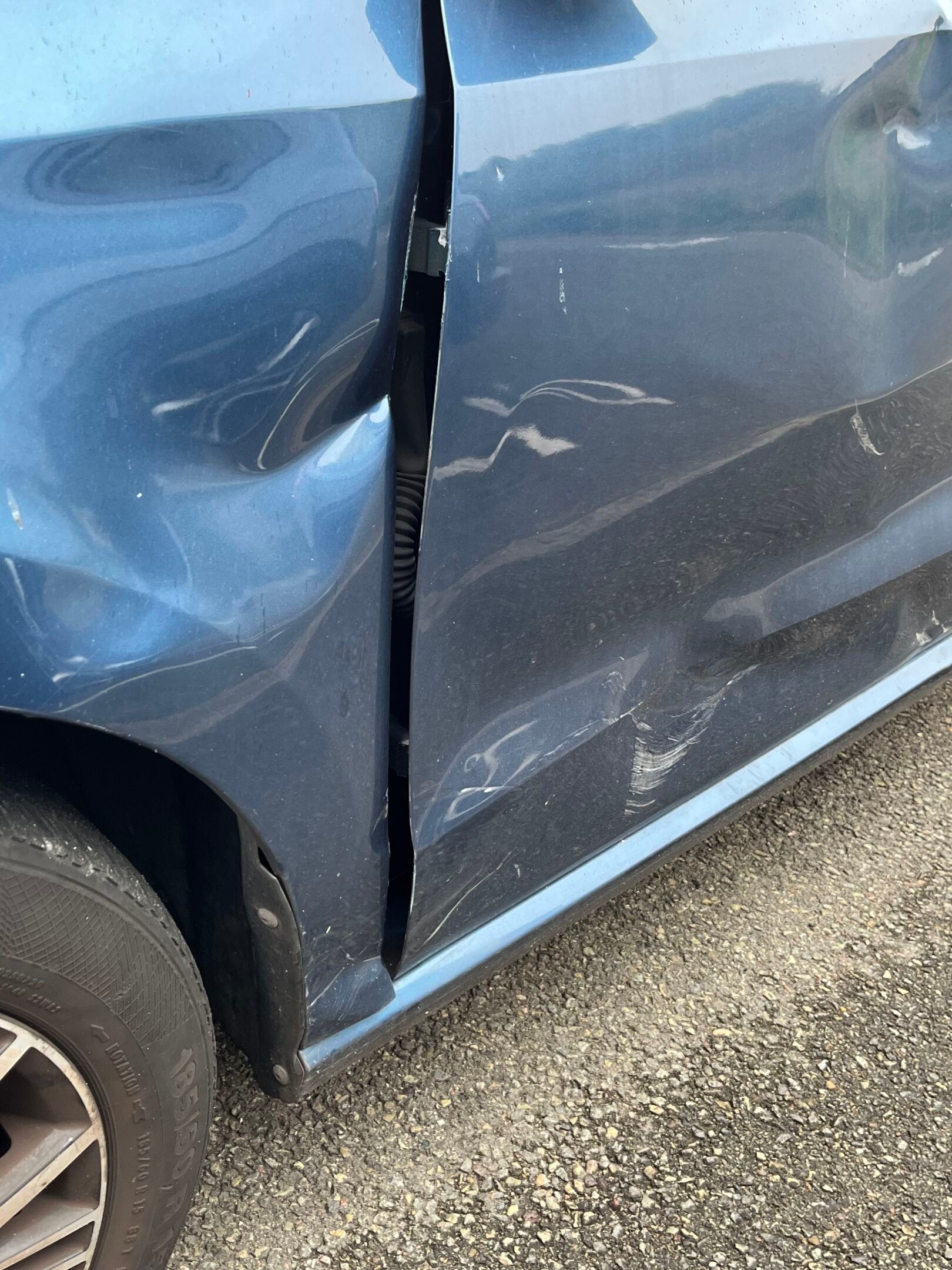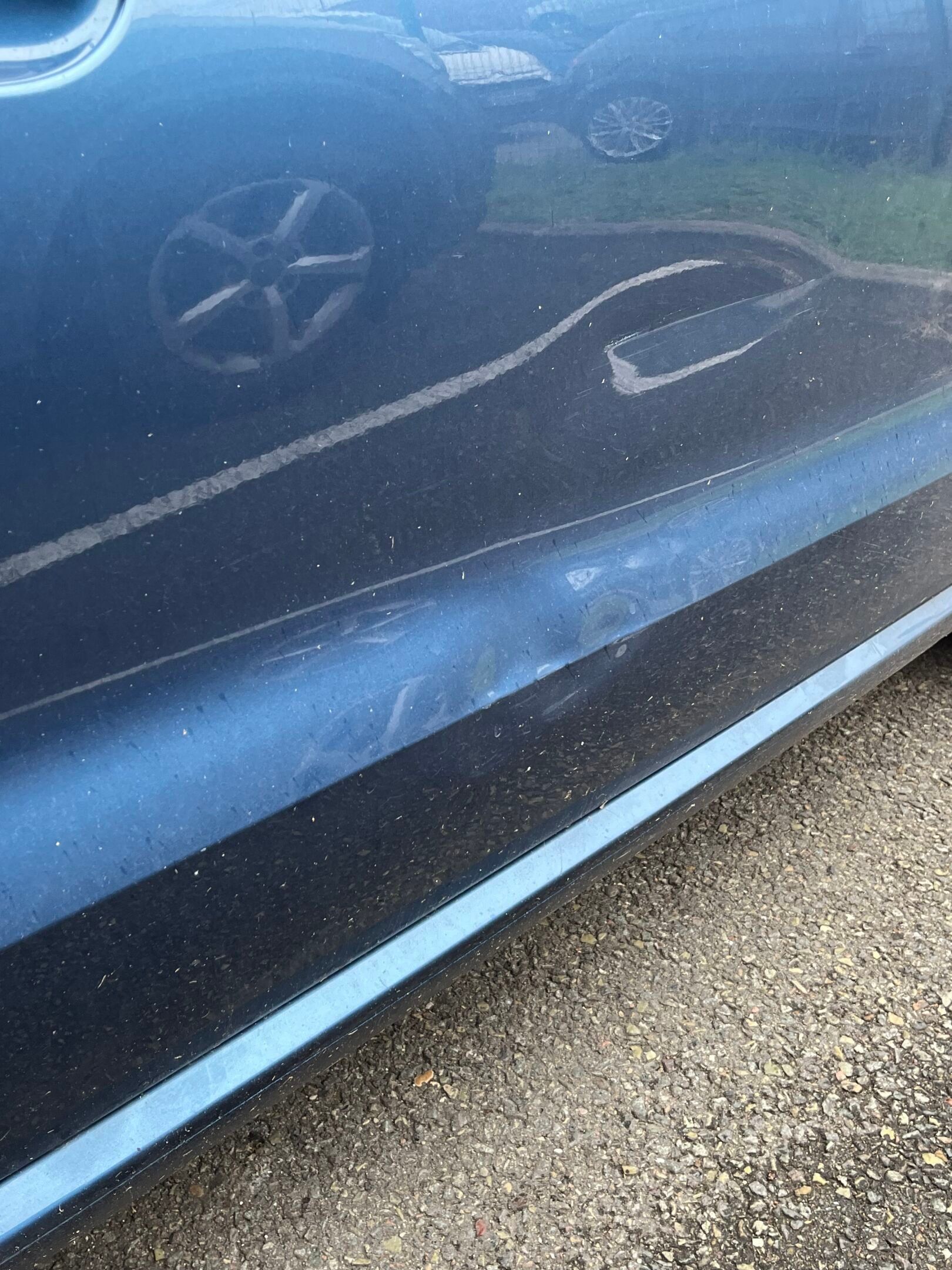 BODY CONDITION: MAJOR DENT IN DOOR AND FRONT LEFT WING AND RIGHT-HAND DOORS, SCRATCHES PARTICULARLY IN THE BOOT AREA, RUBBING.