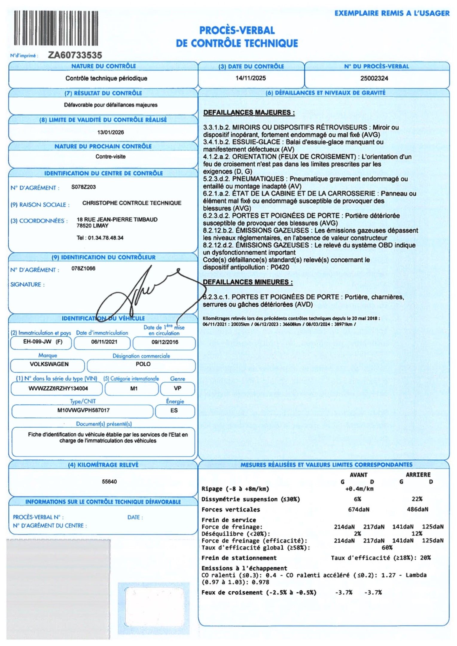 DEF MAJ: MIRRORS, WINDSCREEN WIPERS, ORIENTATION OF LIGHTS, TYRES, ETC. (CF. CT) - Equipment : GPS / AIR CONDITIONING / ELECTRIC WINDOWS / REVERSING RADAR / MANUAL GEARBOX / MULTIMEDIA SYSTEM