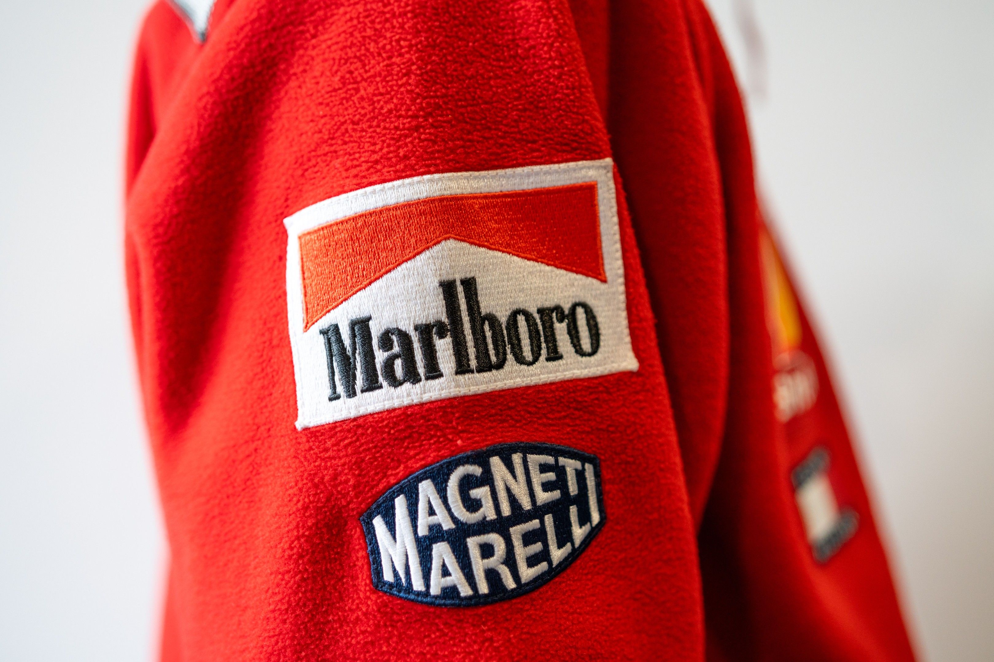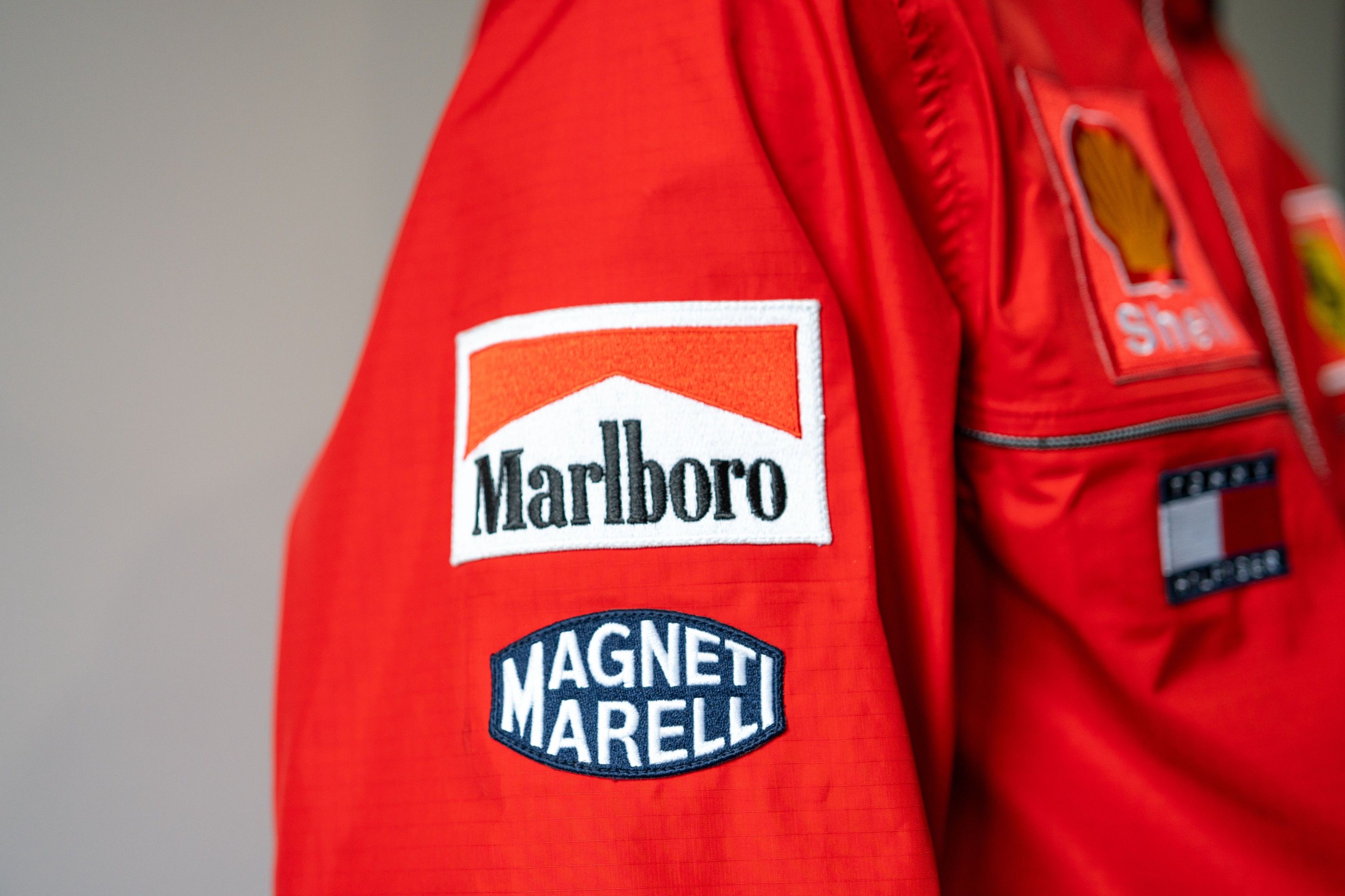 With the effigy of Ferrari and main sponsors Marlboro and Shell