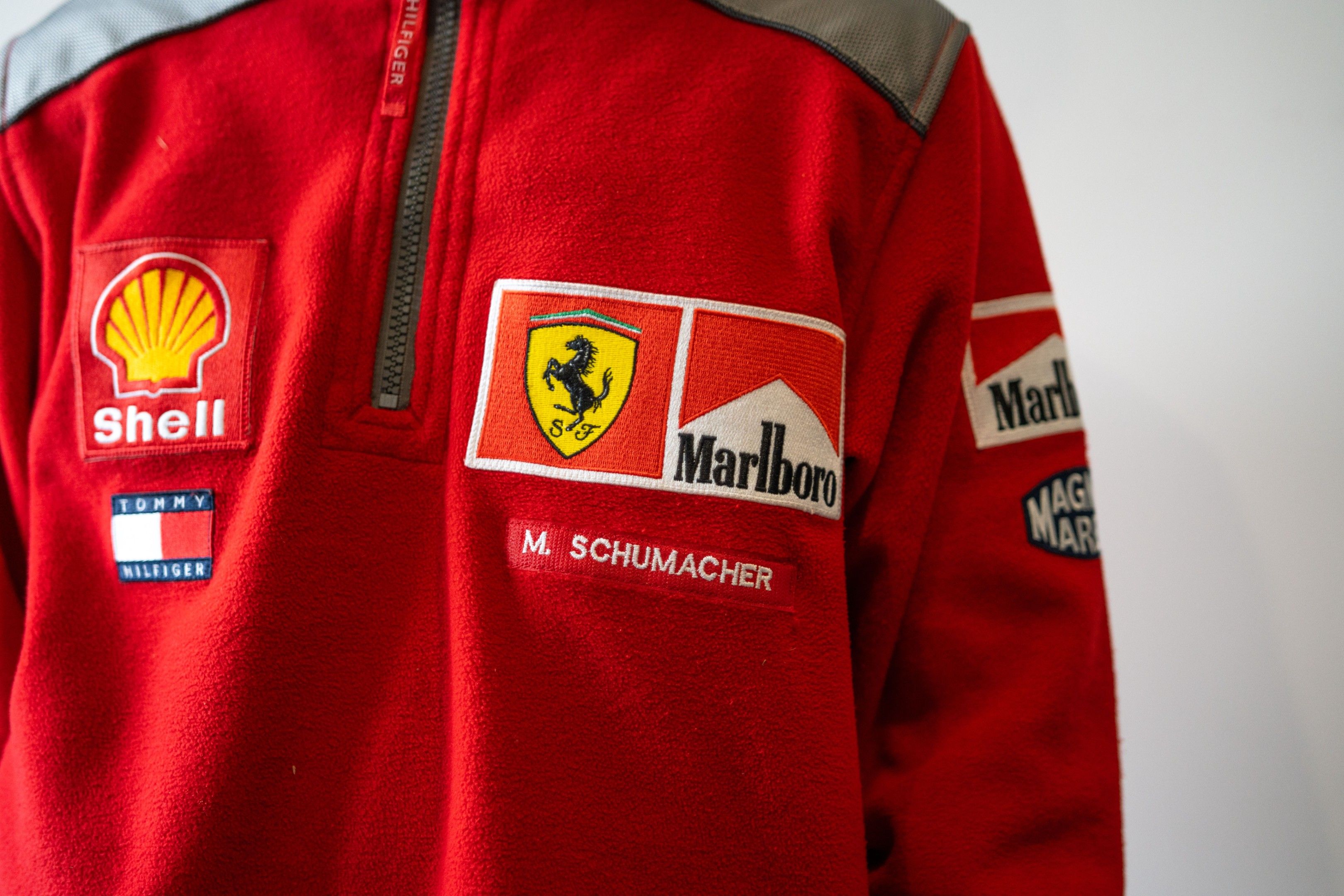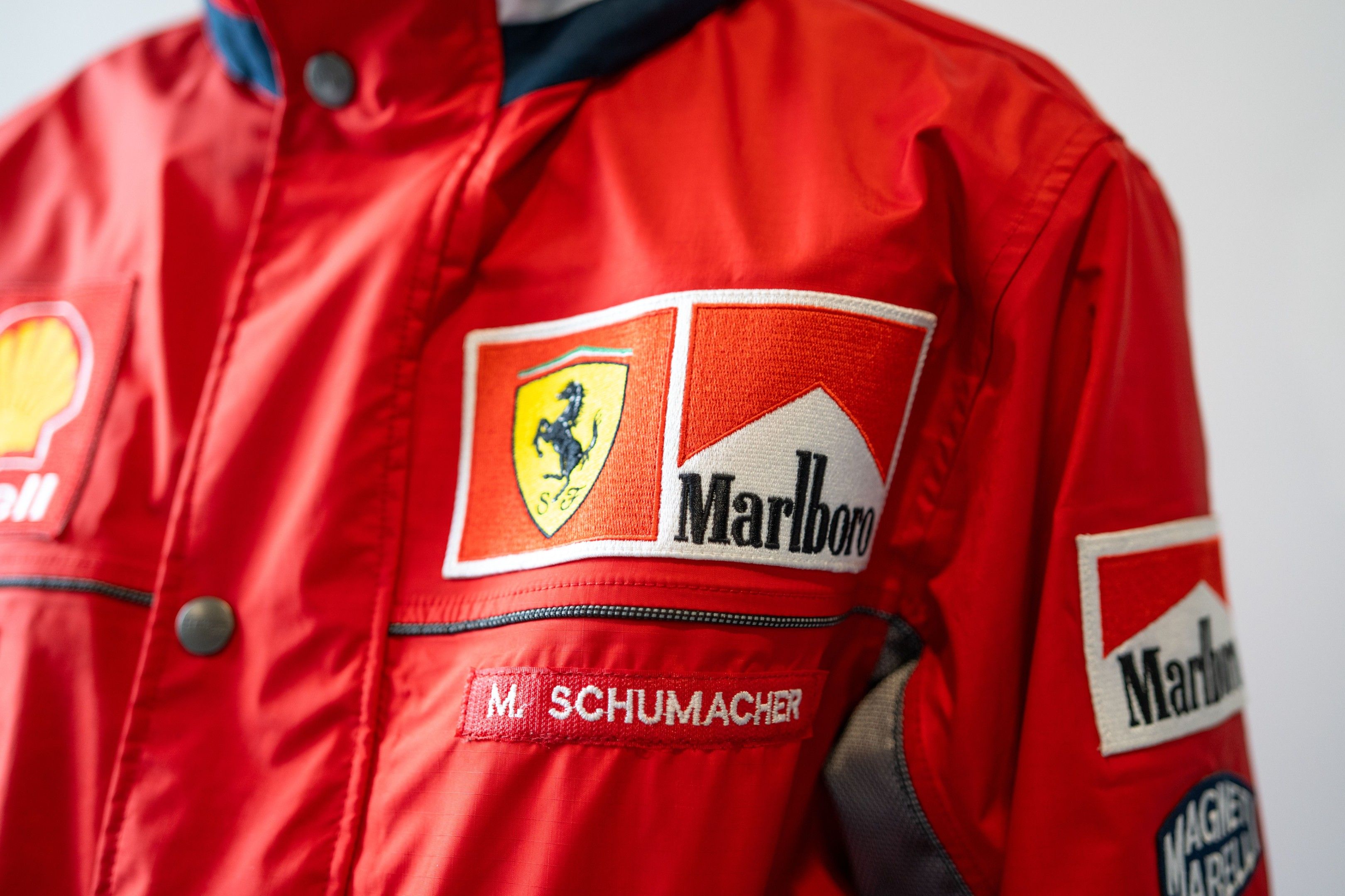 SF set for the 1999/2000 season attributed to Mr Schumacher, comprising a parka, a zip-neck sweatshirt and a sleeveless waistcoat.