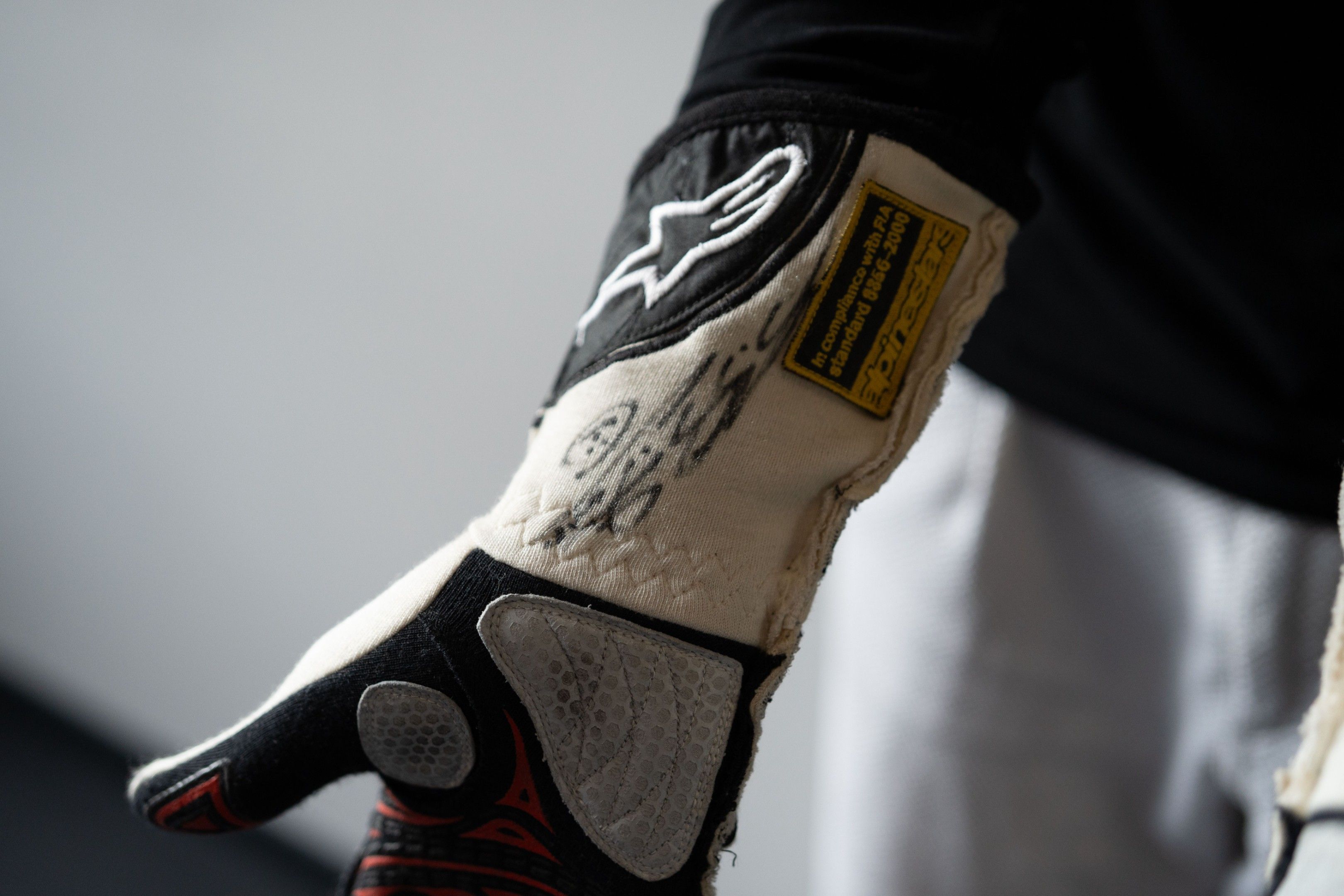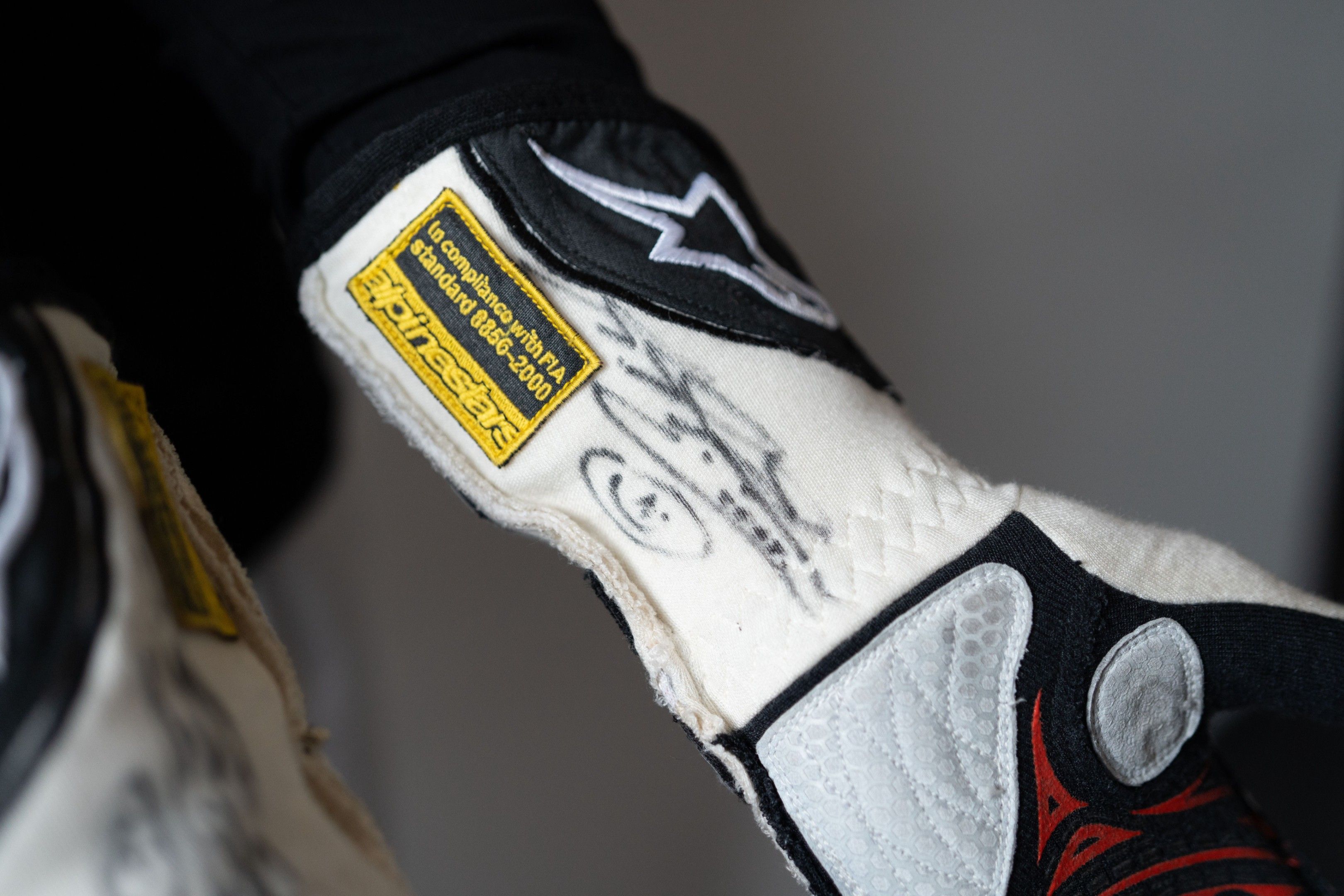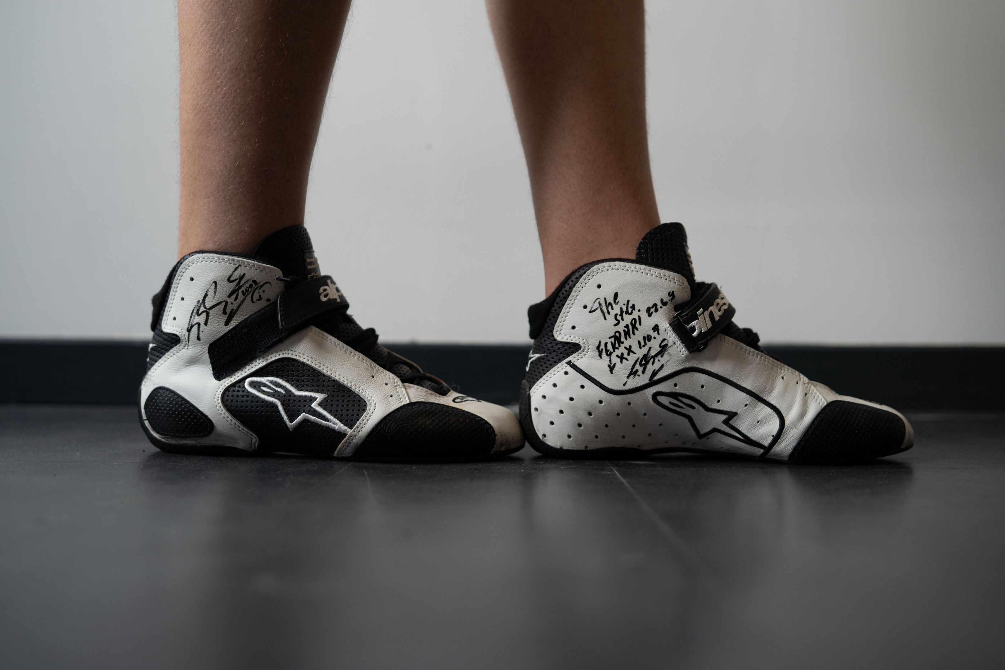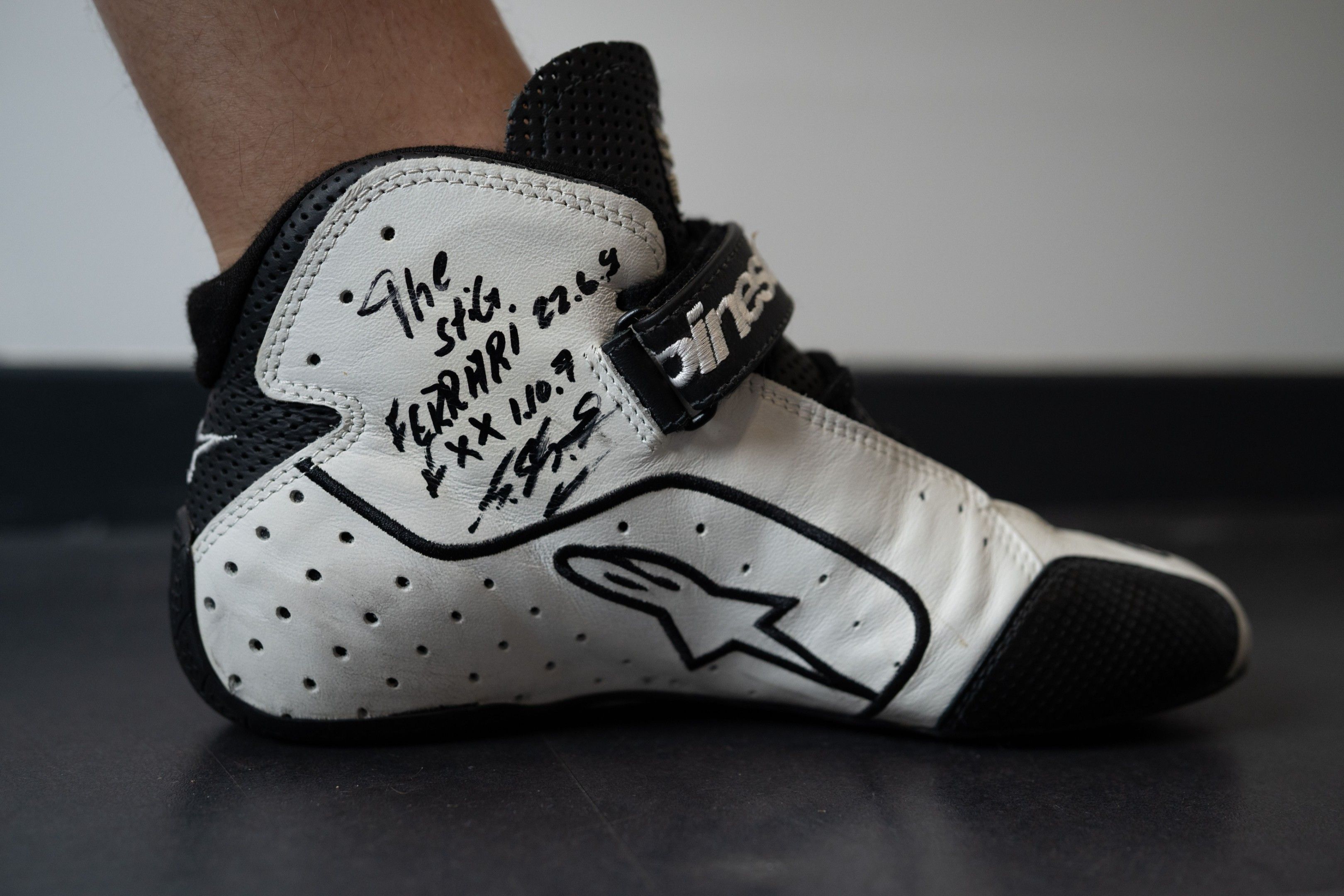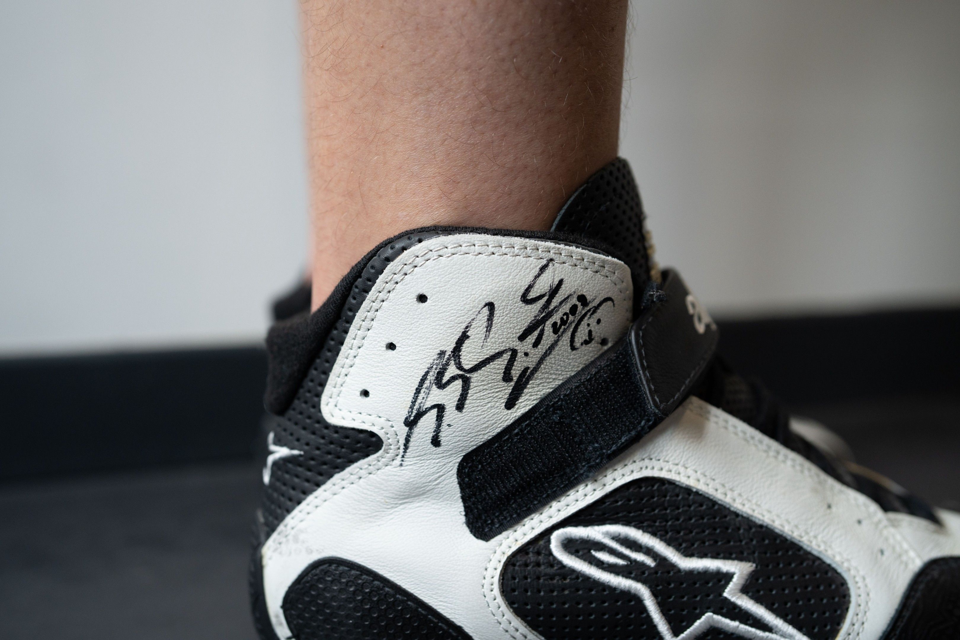 Simpson helmet set with pair of Alpinestars shoes and gloves signed by Michael Schumacher