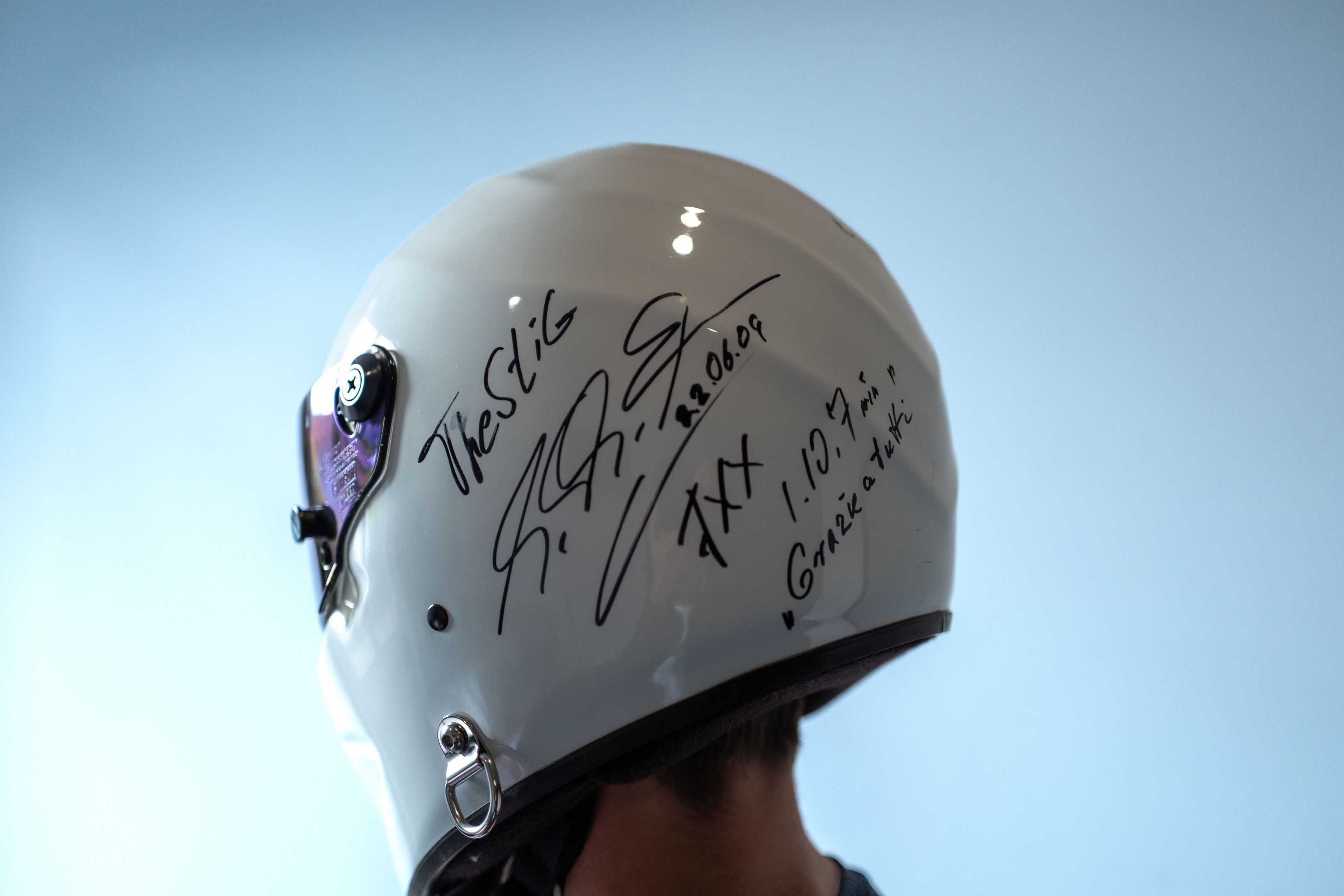 "The Stig / Schumacher Simpson helmet set with pair of Alpin…