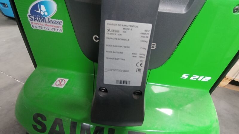 ON DESIGNATION: One CESAB S212 electric stacker, 1200kg capacity, serial no. 6999521 - Estimated hours: 120/140 hours (based on the last meter read) - probably a battery problem (impossible to recharge).