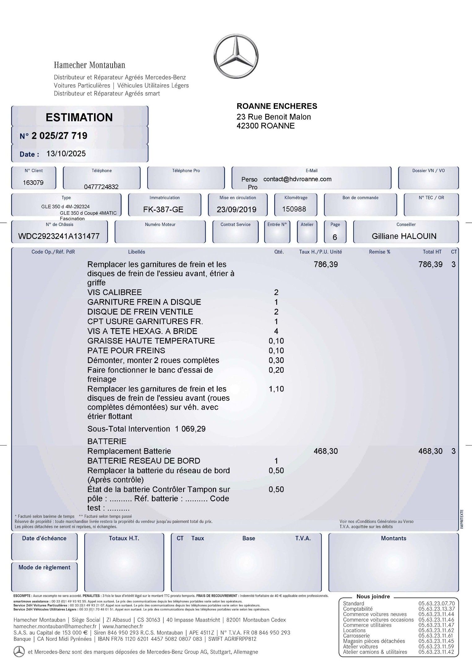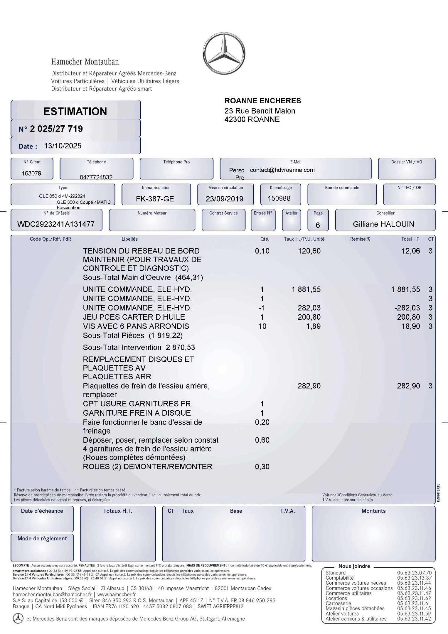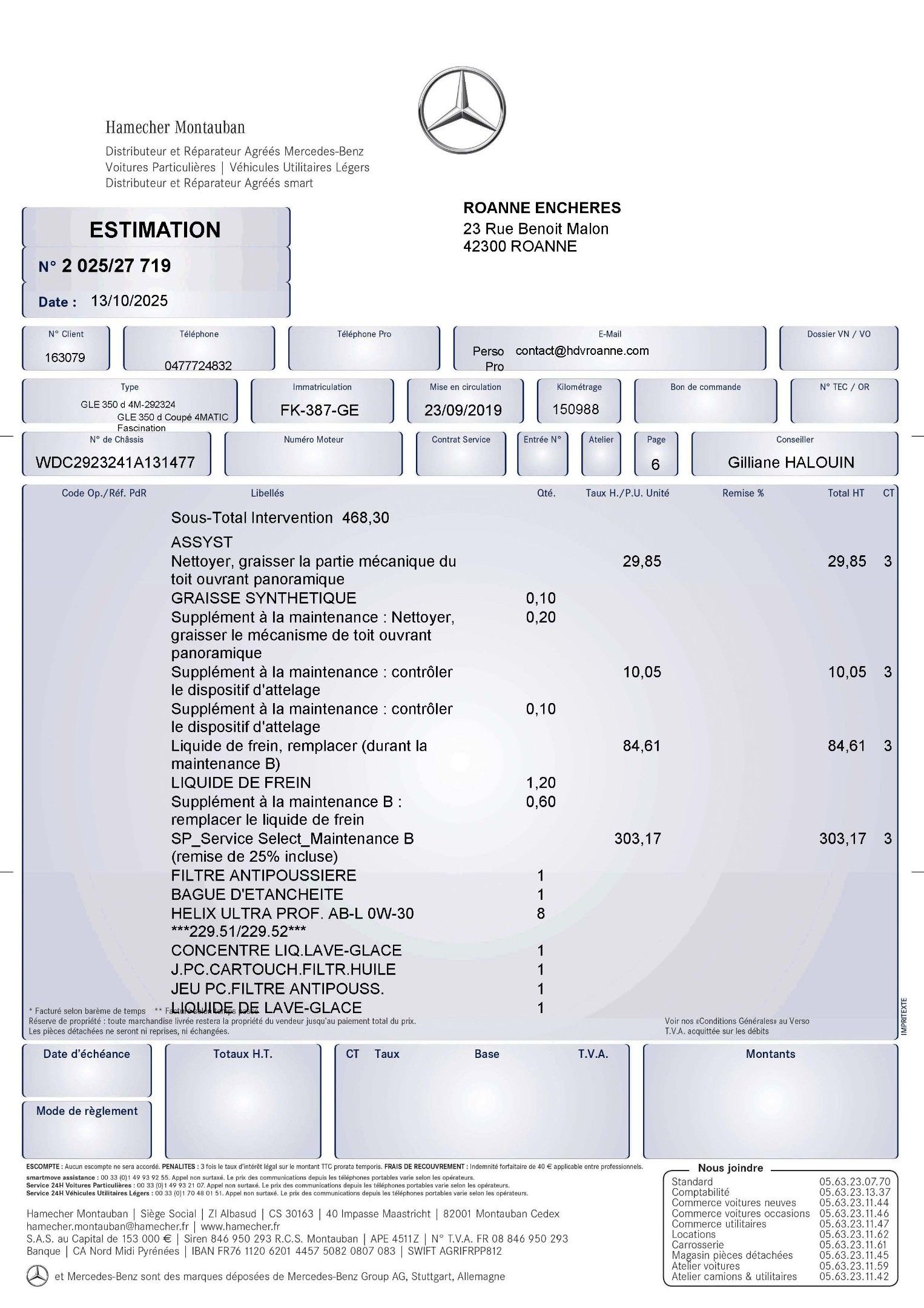 MERCEDES CLASSE GLE SPORTLINE 4MATIC 9G-TRONIC - Type: PC - Body: BREAK - Energy: GO - Colour: BLACK - Odometer reading: 150989 - 1ere M.E.C: 23/09/2019 - Power: 17 - VAT recoverable - Mine type: M1GMCZVPPF43004 - Remarks: UNDER CONSIDERATION: gearbox and regulator failure: see repair estimate in the photos