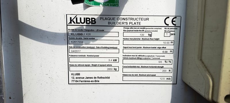 VASP RENAULT MASTER III PHASE 2 L3H2 2.3 dCi 16V ENERGY 170 CV NACELLE KLUBB K26 10 M - 580 H - Dmec: 24/05/2017-159998Kms-8CV-Bodywork: WORKS-Energy: GO-Colour: WHITE-Recoverable VAT-Equipment: 3 SEATER/ABS/AD BLUE/6 SPEED GEARBOX/MECH GEARBOX/MANUAL AIR CONDITIONING/ASSISTED STEERING/ESP/CENTRAL LOCKING/ 2017 KLUBB K26 SEAT/REGULATION AND LIMITER/RADIO CD/RADIO STEERING WHEEL CONTROL/ELECTRIC MIRRORS/ELECTRIC WINDOWS/FRONT LEFT WINDOW TO BE REVISED/FUNCTIONAL SEAT/THE POWER TAKE-OFF ENGAGES/CLOCK : 580 HOURS/MATERIAL CE PLATE/SIDE DOOR HANDLE BROKEN/DRIVER'S SIDE WINDOW NEEDS OVERHAULING/KNOCKS AND SCRATCHES ON COACHWORK/TYRES: 225/65R16/WITH VGP/REGISTRATION AVAILABLE