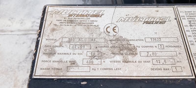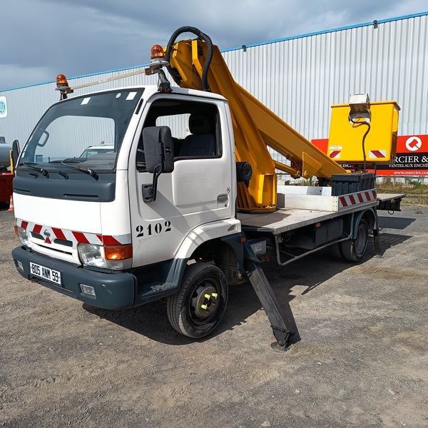 VASP NISSAN CABSTAR AVEC NACELLE MULTITEL 180ALUAF - 18 M - 3535 HEURES - 59377 KMS - Dmec : 27/08/2001-59377Kms-10CV-Bodywork : WORK-Energy : GO-Colour : WHITE-VAT recoverable-Equipments : /2 PLACES/ABS/BOITE 5 SPEEDS/BTE MECA/ASSISTE STEERING/ESP/NACELLE MULTITEL 180 ALU AF DE 2001/VITRES ÉLECTRIQUES/NACELLE FONCTIONNELLE/HORAMERE : 3535 HEURES/MATERIEL PLAQUE CE AVEC CERTIFICAT/FUITE HYDROLIQUE AU NIVEAU DU VERRIN DE LA FLECHE/POIGNEE DU FREIN A MAIN A REVOIR/COUPS ET GRIFFES SUR CARROSSERIE/PRESENTATION VIDEO https://youtu.be/6aSxLCUSaOA/VGP OK/