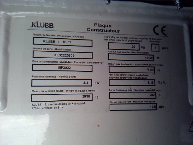 VASP RENAULT MASTER NACELLE SUR VL 12M KLUBB KL32 181H - Dmec: 08/06/2022-169847Kms-6CV-Bodywork: TRAVAUX-Energy: GO-Colour: BLANC-TVA récupérable-Equipements: : 12M/181H/KLUBB KL32/1 SIDE DOOR/2 DOORS/3 SEATS/ABS/TRAILER HITCH/BLUETOOTH/BOX 6/MANUAL AIR CONDITIONING/REVERSING CAMERA/ASSISTED STEERING/RAIN SENSOR/LIGHT SENSOR/ESP/CENTRAL LOCKING/WOOD INTERIOR//REGULATION AND LIMITER/REAR RADAR/ELECTRIC MIRRORS/ MP3 RADIO/ELECTRIC WINDOWS/LED NIGHT LIGHTS/VGP OK/