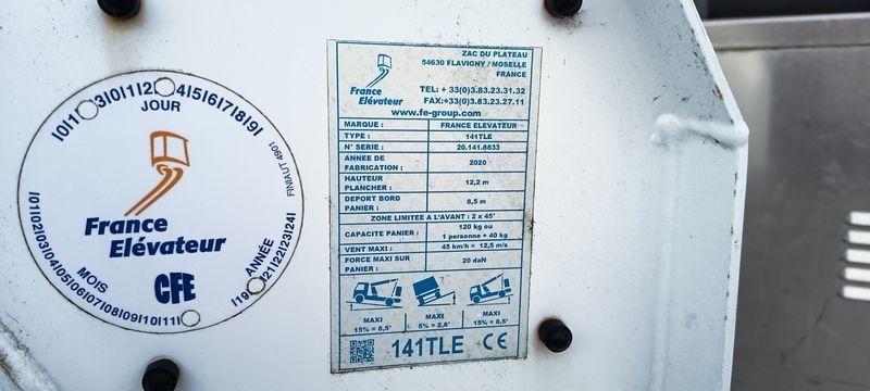 VASP IVECO DAILY 35S14H AVEC NACELLE FRANCE ELEVATEUR 141 TLE - 12M - 344 HEURES- AN 2020 - Dmec: 22/12/2020-70857Kms-8CV-Bodywork: WORKS-Energy: GO-Color: WHITE-VAT recoverable-Equipments: COC+BARRE ROUGE/2 PLACES/ABS/AD BLUE/BOITE 6 VITESSES/BTE MECA/CLIMATISATION MANUELLE/DIRECTION ASSISTENTEE/ESP/FERMETRALE CENTRALISEE/NACELLE FRANCE ELEVATEUR 141 TLE DE 2020/REGUL ET LIMITEUR/RADIO COMMANDE AU VOLANT/RETROVISEURS ELECTRIQUES/RADIO MP3/VITRES ELECTRIQUES/NACELLE FONCTIONNELLE/HORAMÈTRE: 344 HEURES/FOURNI AVEC CERTIFICAT CE ET MANUEL D'UTILISATION/PNE TYRES ARRIÈRE NEUF/PRESENTATION VIDEO: https://youtu.be/v9tUqCJfAFk/-CARTE GRISE DISPONIBLE
