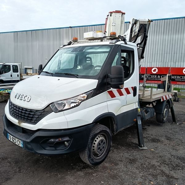 VASP IVECO DAILY 35S14 AVEC NACELLE 141TLE - 12 M - DIESEL - 220 HEURES - ANNEE 2020 - Dmec : 16/11/2020-16730Kms-8CV-Bodywork : WORK-Energy : GO-Color : WHITE-VAT recoverable-Equipments : 2 SEATER/ABS/6 SPEED GEARBOX/MECHANICAL GEARBOX/MANUAL AIR CONDITIONING/ASSISTED STEERING/ESP/CENTRAL LOCKING/LIFTING PLATFORM FRANCE 141TLE FROM 2020/FOG LAMPS/REGULATION AND LIMITER/RADIO STEERING WHEEL CONTROL/ELECTRIC MIRRORS/MP3 RADIO/ELECTRIC WINDOWS/FUNCTIONAL HATCH/HOROMETER: 220 HOURS/SUPPLIED WITH EC CERTIFICATE AND INSTRUCTION MANUAL/VIDEO PRESENTATION: https://youtu.be/WkTJmct8Nd8/