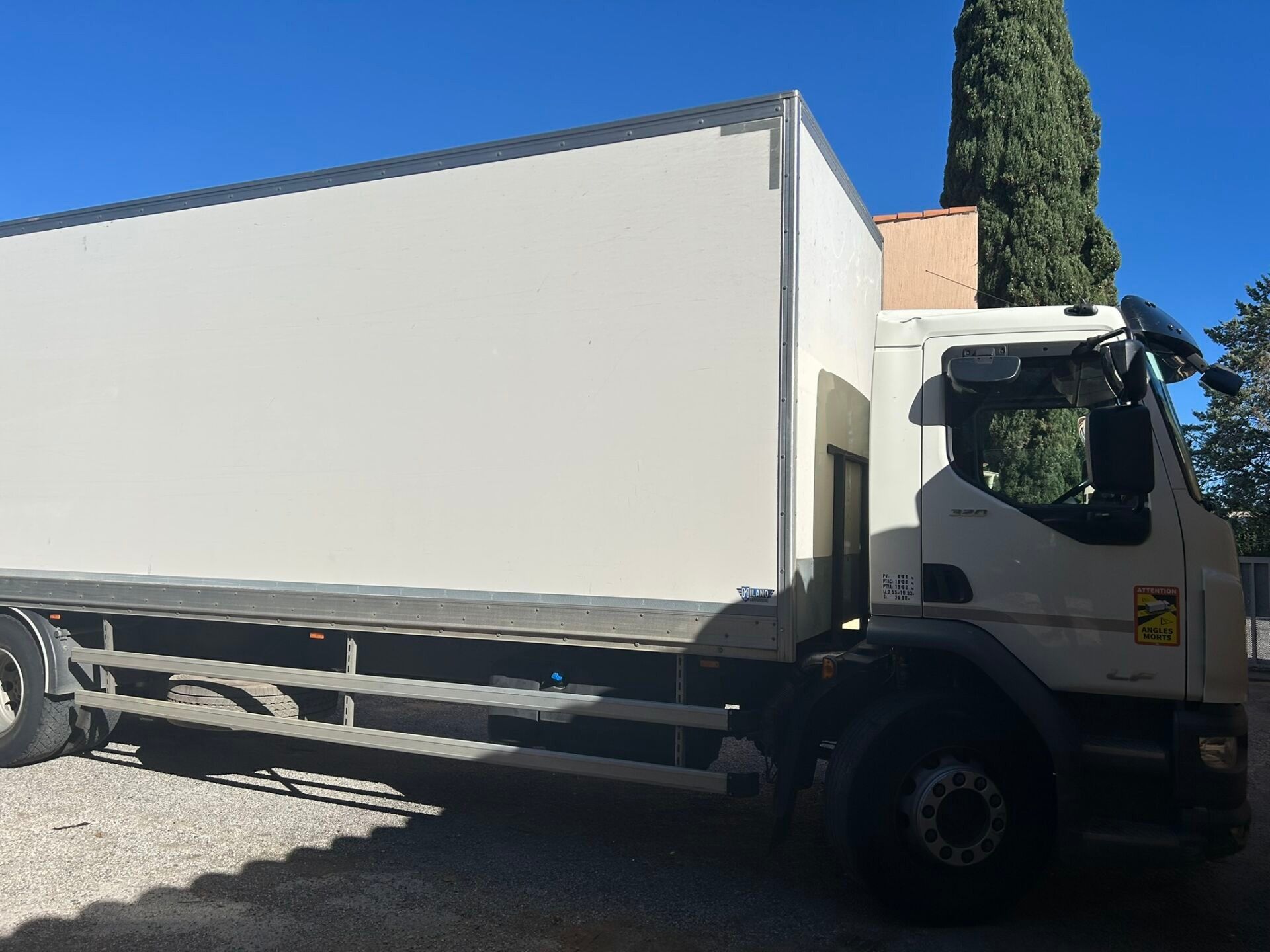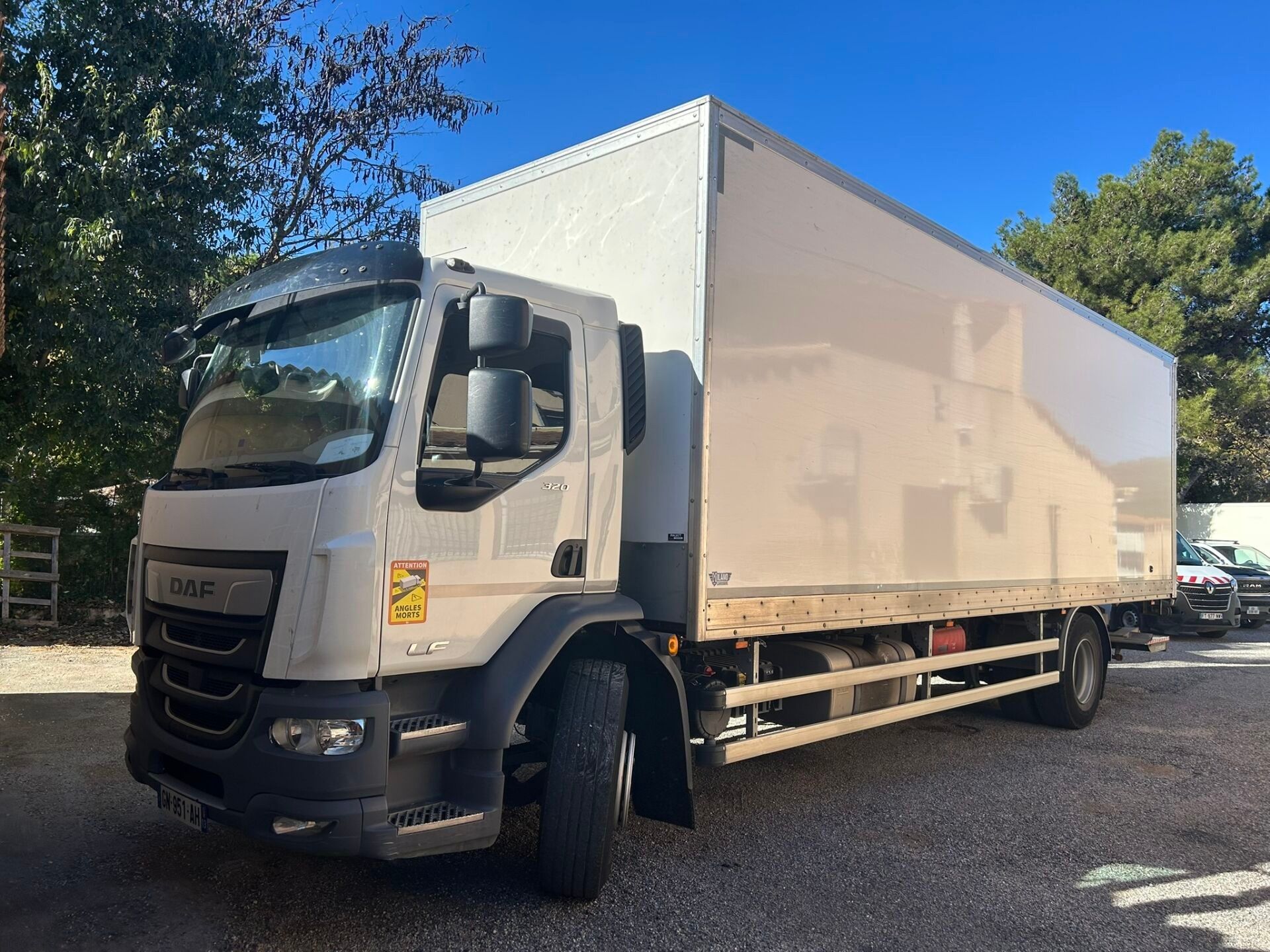 LF 320 CAISSE MESSAGERIE AVEC HAYON PLIANT DHOLLANDIA TYPE LF310FA DAF - Type : CAM - Body : FOURGON - Energie : GO - Couleur : BLANC - Kilometrage compteur : 117190 - 1ere M.E.C : 29/03/2023 - Puissance : 18 - Tva récupérable - Places : 2 - PARE BRISE CASSE PV : 8T66 GVW: 19T GVWR: 19T LXl: 2.55M X 10.55M S : 26.90M² LONG inside body length: 8.50m interior body width: 2.47m interior body height: 2.55m - Equipment : AUTOMATIC GEARBOX / ELECTRIC WINDOWS / AIR CONDITIONING / REVERSING CAMERA / CRUISE CONTROL / ELECTRIC MIRRORS