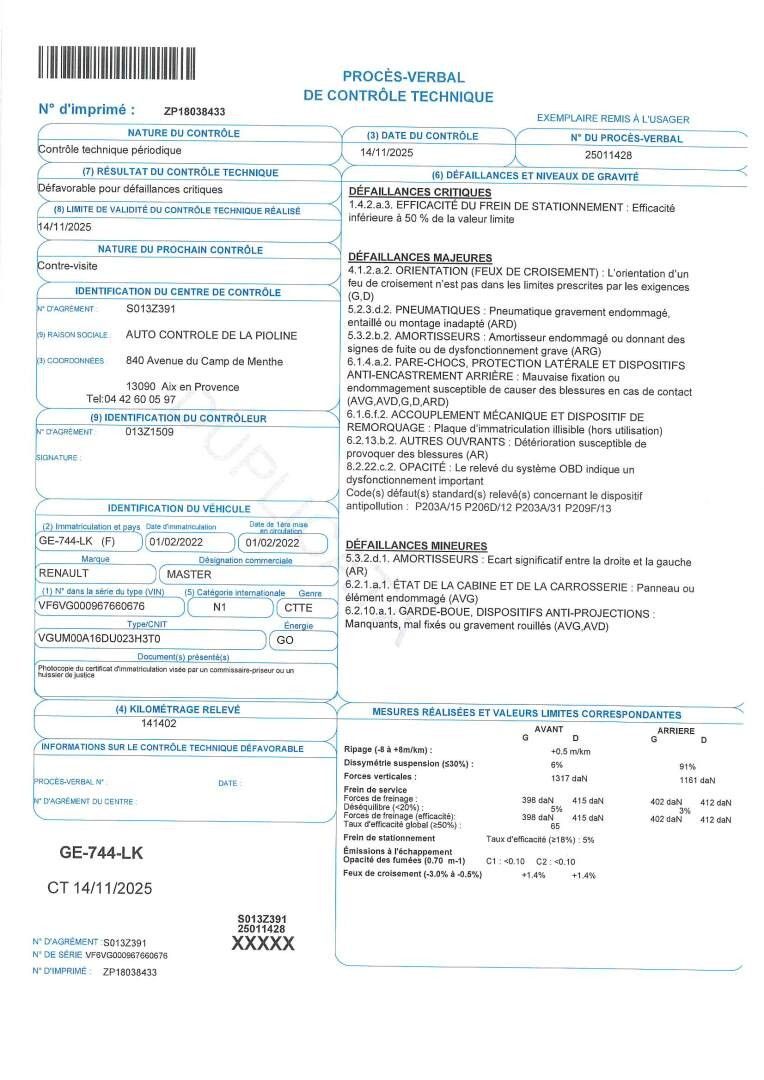 MASTER DCI 145 CAISSE MESSAGERIE AVEC HAYON RENAULT - Type : CTTE - Body : FOURGON - Energy : GO - Colour : BLANC - Kilometrage compteur : 141398 - 1ere M.E.C : 10/02/2022 - Puissance : 8 - Tva récupérable - Places : 3 - SANS CG AVEC FIV - Equipements : ON-BOARD COMPUTER / 6-SPEED GEARBOX / AIR BAGS / CENTRAL LOCKING / POWER STEERING / AIR CONDITIONING / ELECTRIC WINDOWS / ELECTRIC MIRRORS / CRUISE CONTROL