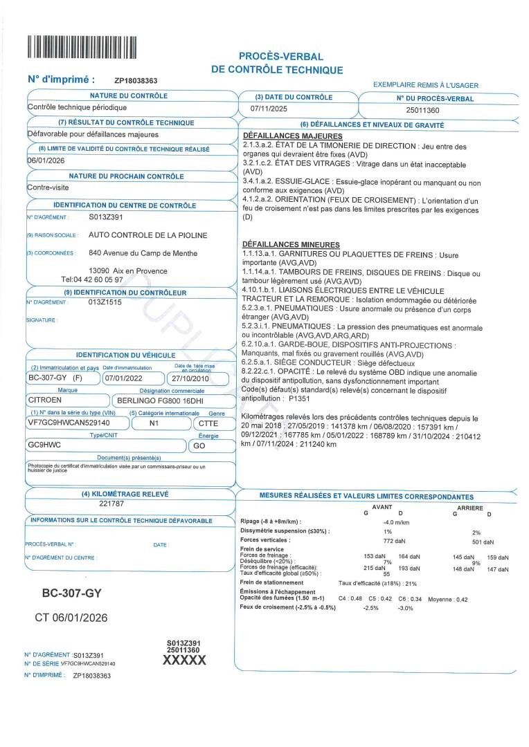 BERLINGO FIRST CITROEN - Type : CTTE - Body : FOURGON - Energy : GO - Color : BLANC - Mileage : 221784 - 1ere M.E.C : 27/10/2010 - Power : 6 - Tva récupérable - Seats : 2 - VEHICLE FUME - Equipment : REGULATED AIR CONDITIONING / AIR BAGS / CENTRAL LOCKING / TOWBAR / ELECTRIC WINDOWS / POWER STEERING