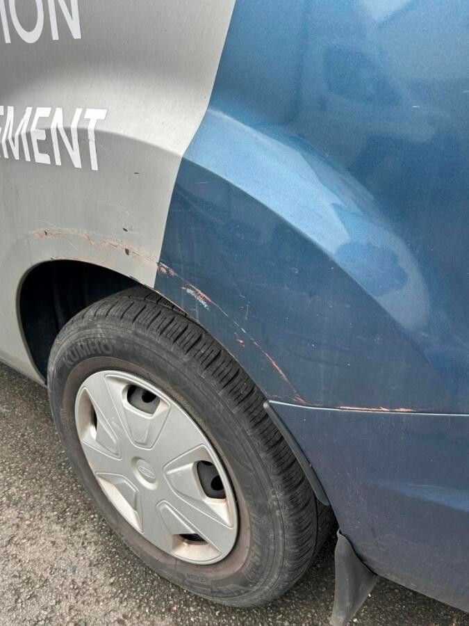 Note: Registration OK. Certificate of non-pledge OK. 1 key (malfunction). Towing hook. Engine broken. Flat tyre. Blows to bodywork. Cracked windscreen.