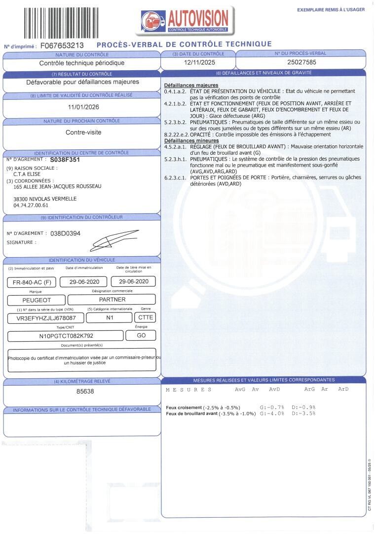 PEUGEOT PARTNER CA BLUEHDI 130 S&S BVM6 - Type : CTTE - Body : FOURGON - Energy : GO - Color : BLANC - Mileage : 85636 - 1ere M.E.C : 29/06/2020 - Power : 5 - Tva récupérable - Type mines : N10PGTCT082K792 - Seats : 5 - Equipment : GPS / REVERSING RADAR / BLUETOOTH / SIDE DOOR