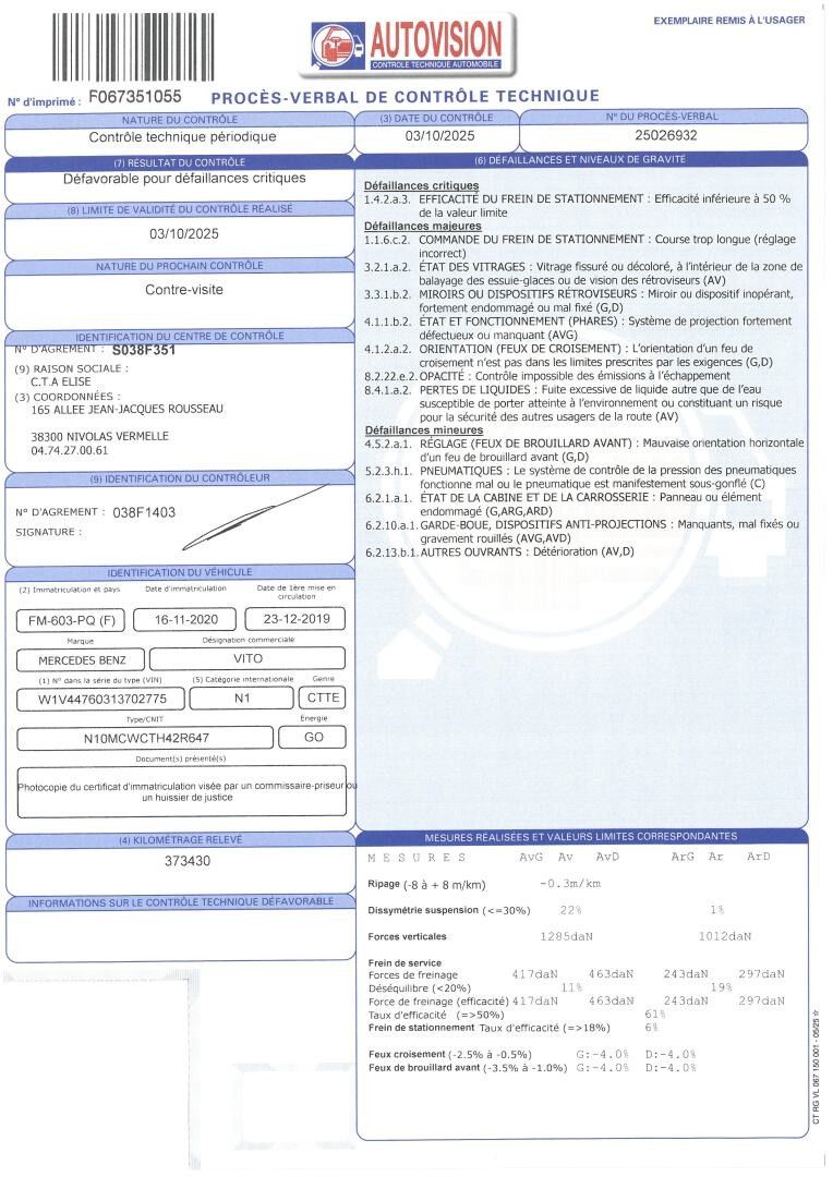 MERCEDES BENZ VITO FOURGON FRIGO 116 CDI LONG BVA PRO - Type : CTTE - Body : FOURGON - Energy : GO - Color : BLANC - Mileage : 373429 - 1ere M.E.C : 23/12/2019 - Puissance : 7 - Tva récupérable - Type mines : N10MCWCTH42R647 - Places : 3 - Observations : Cap ne ferme pas, FRIGO THERMOKING 2 compartiments.batterie à remplacer - Vendu sans carte grise, avec fiche d'identification - Equipements : REVERSING CAMERA / USB / SIDE DOOR / BLUETOOTH / COSTS : 14.28% + 100€ AVAILABLE / AIR CONDITIONING